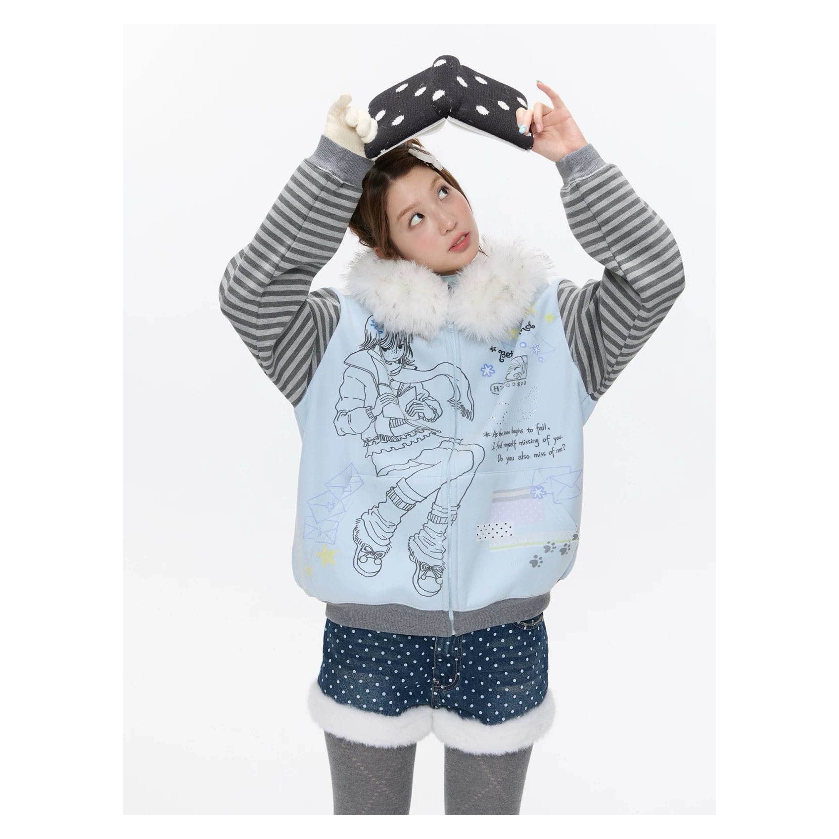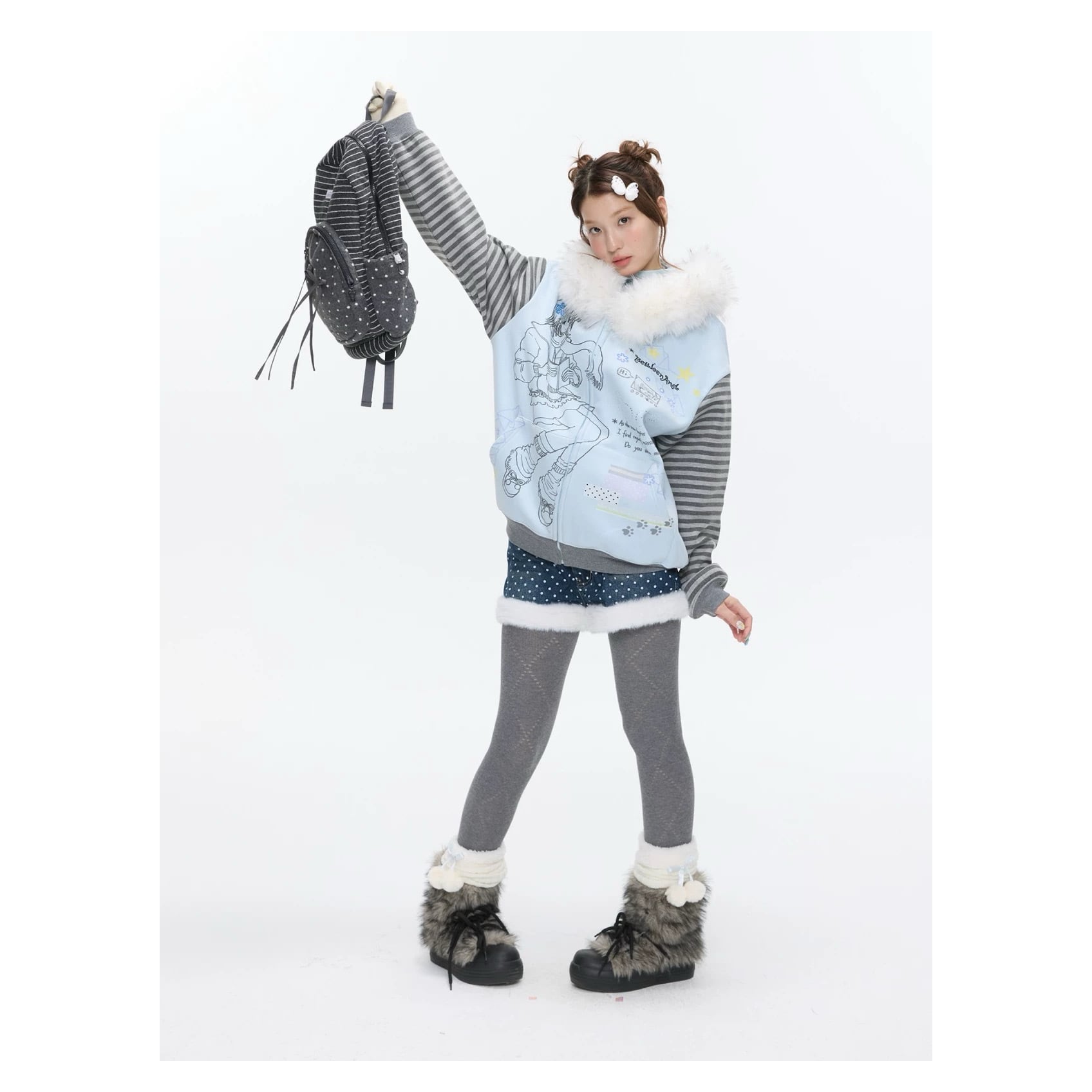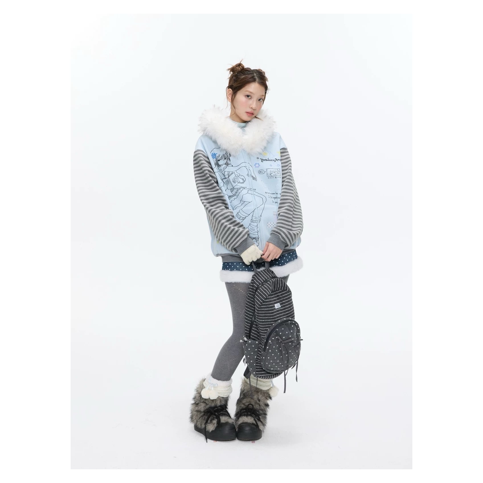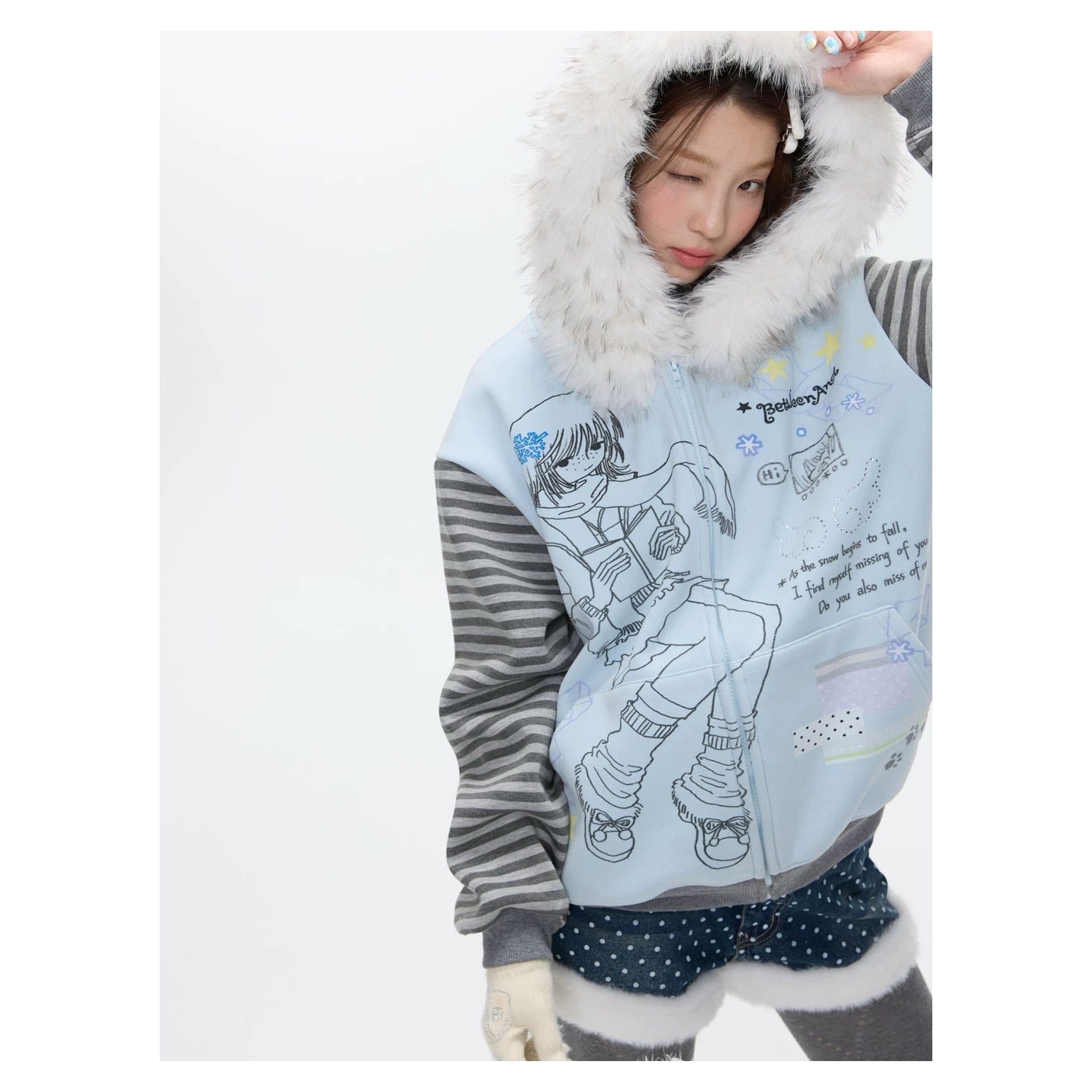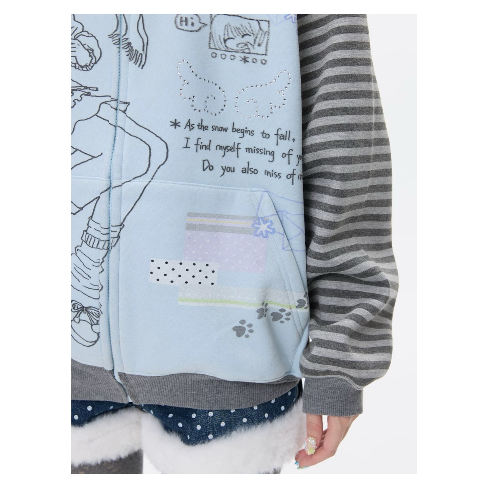 [BETWEENAND] Striped Sleeve Sea Salt Blue Hoodie