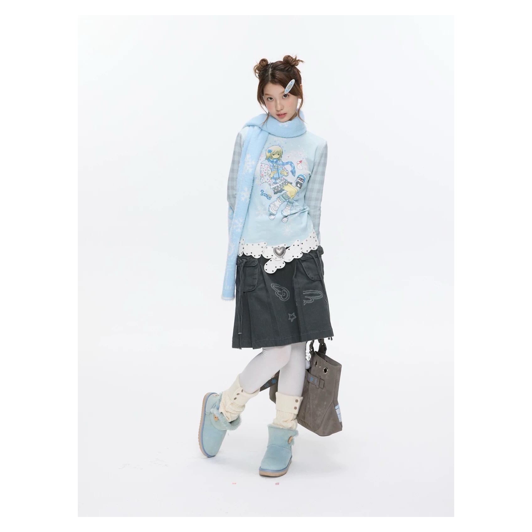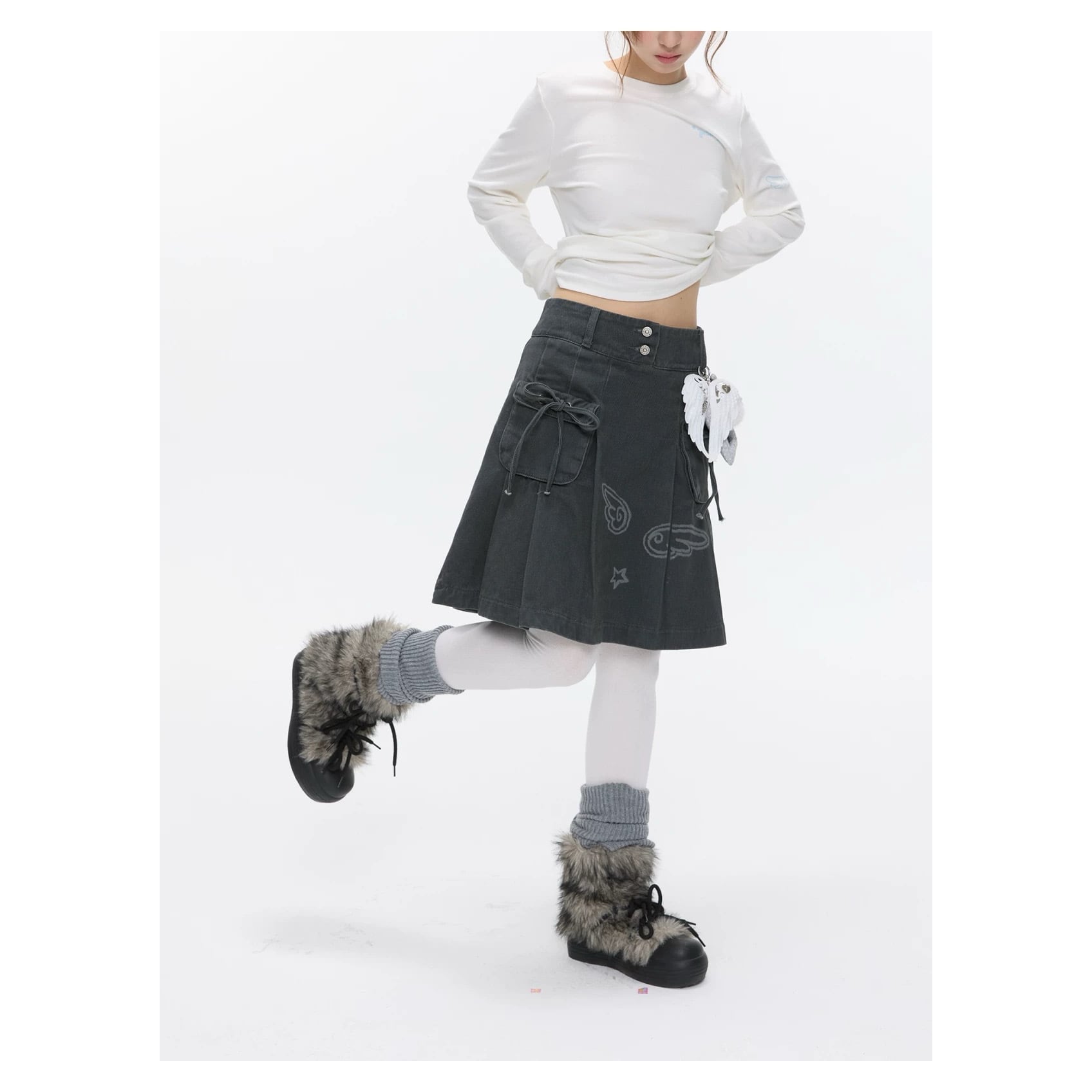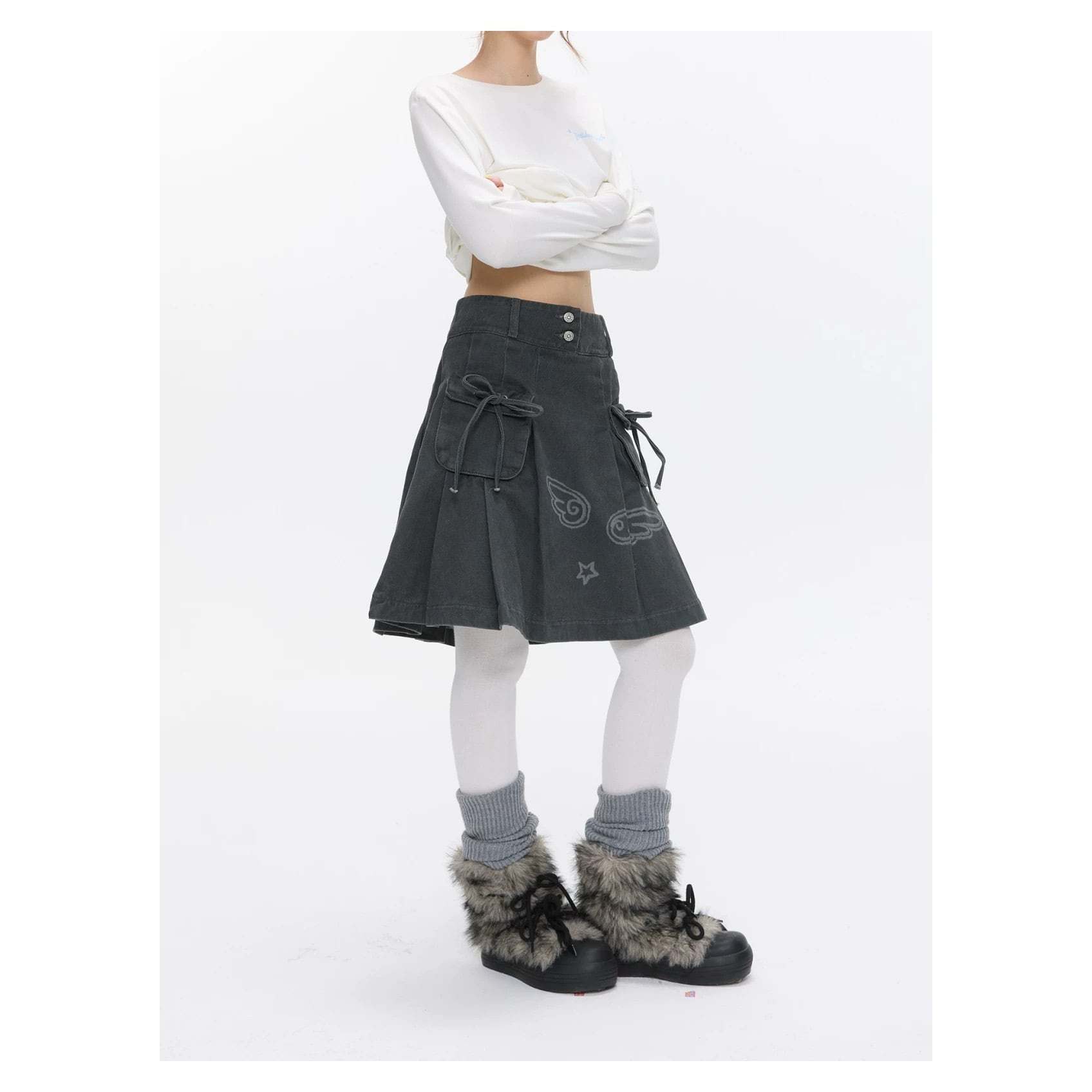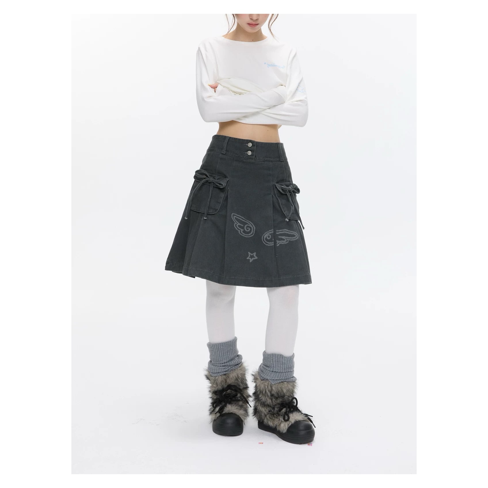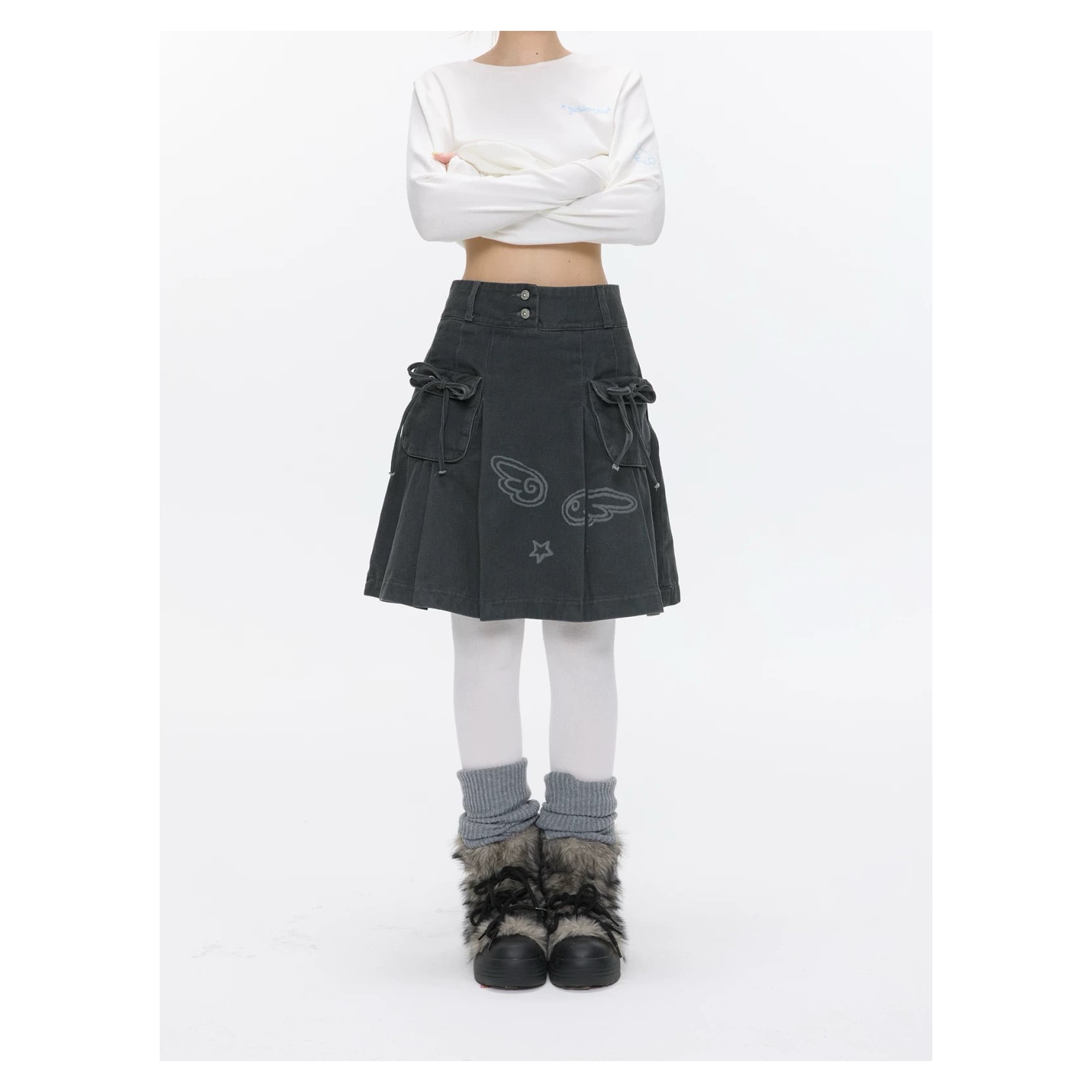 [BETWEENAND] Vintage Wash Workwear Denim Skirt