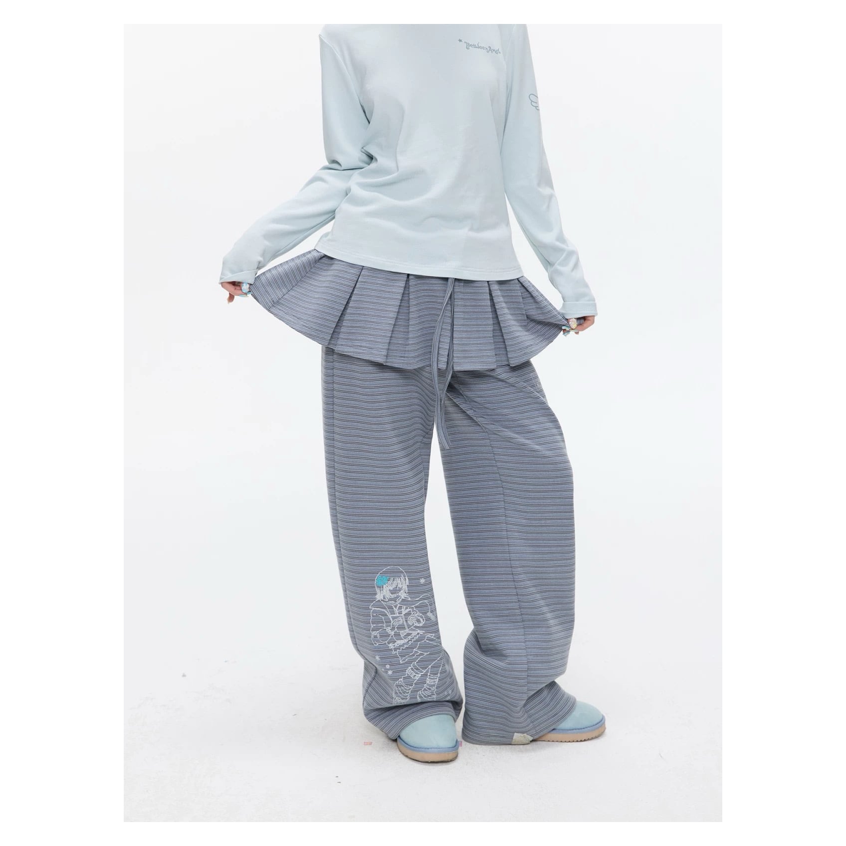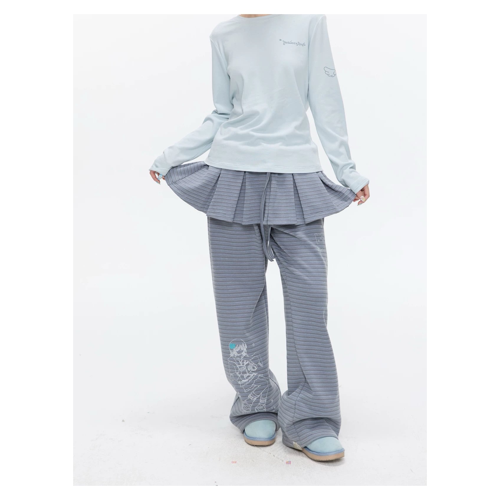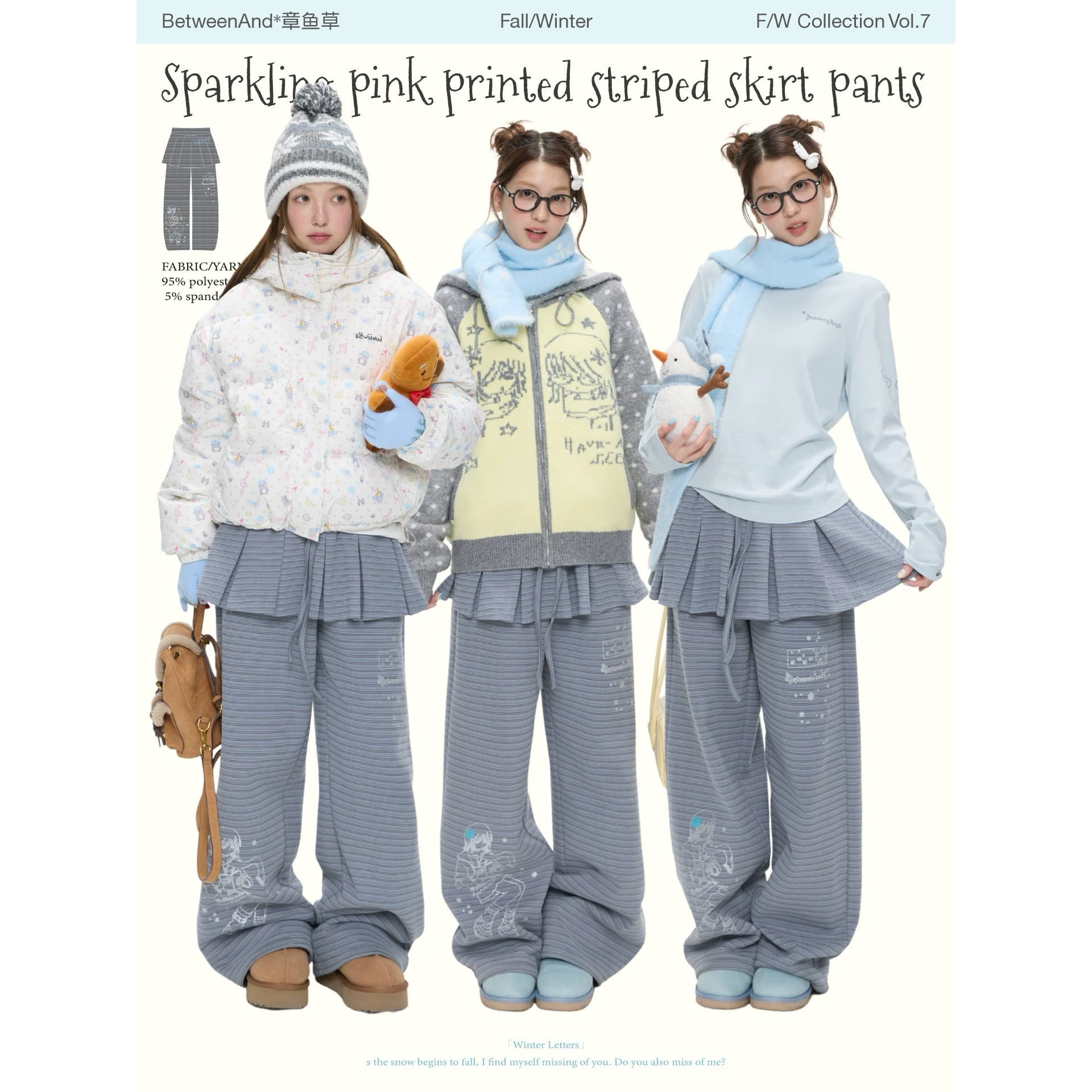 [BETWEENAND] Gray Blue Stripe Casual Pants