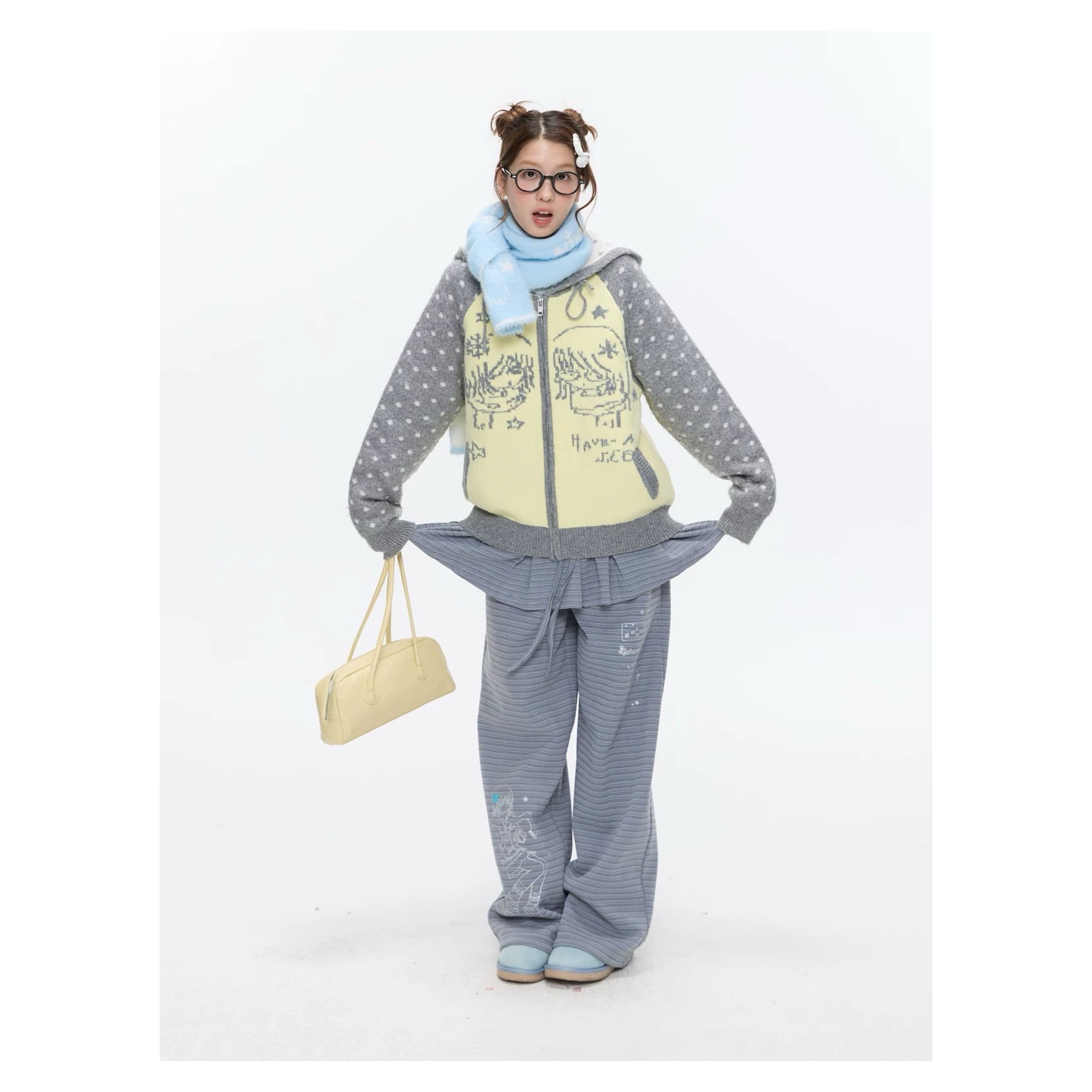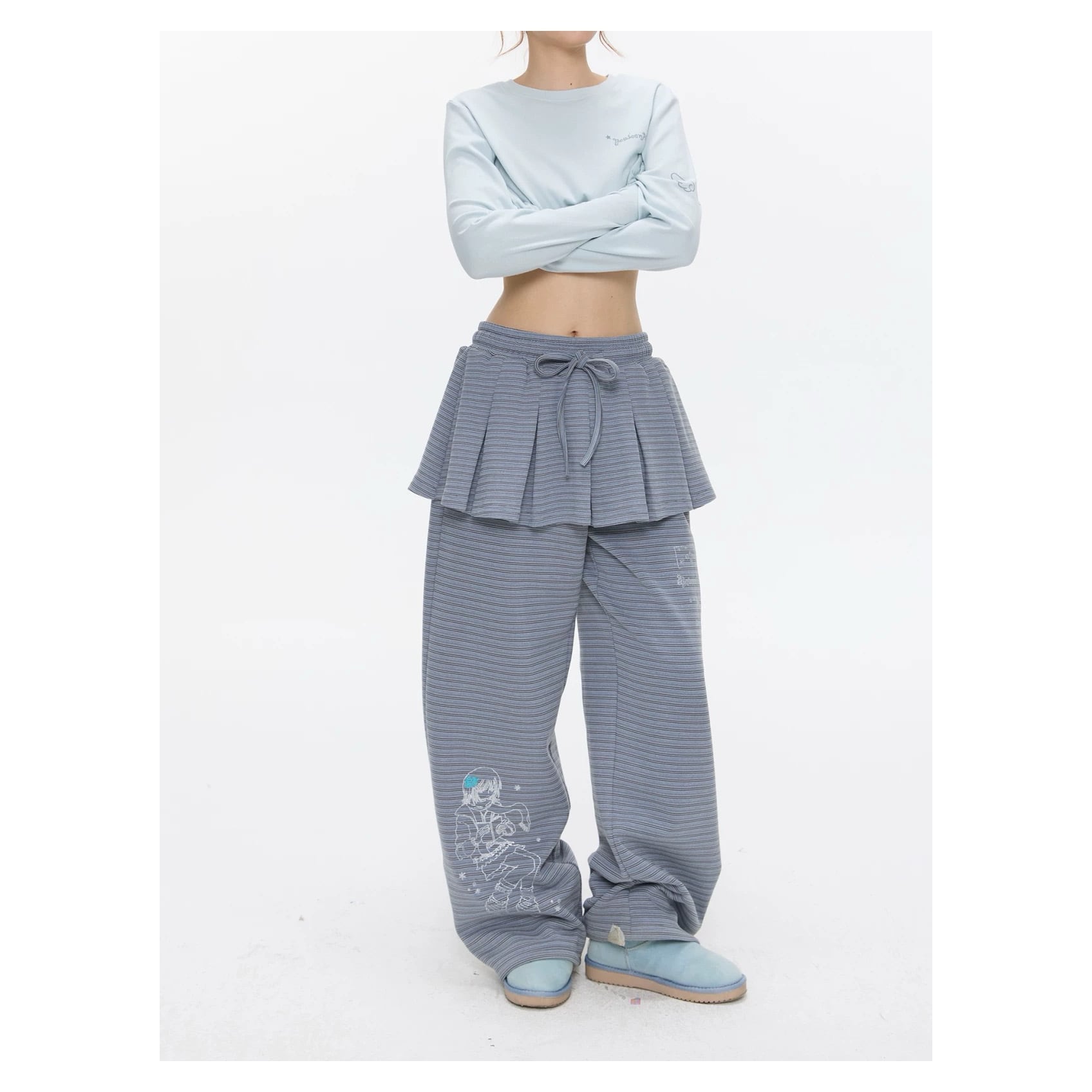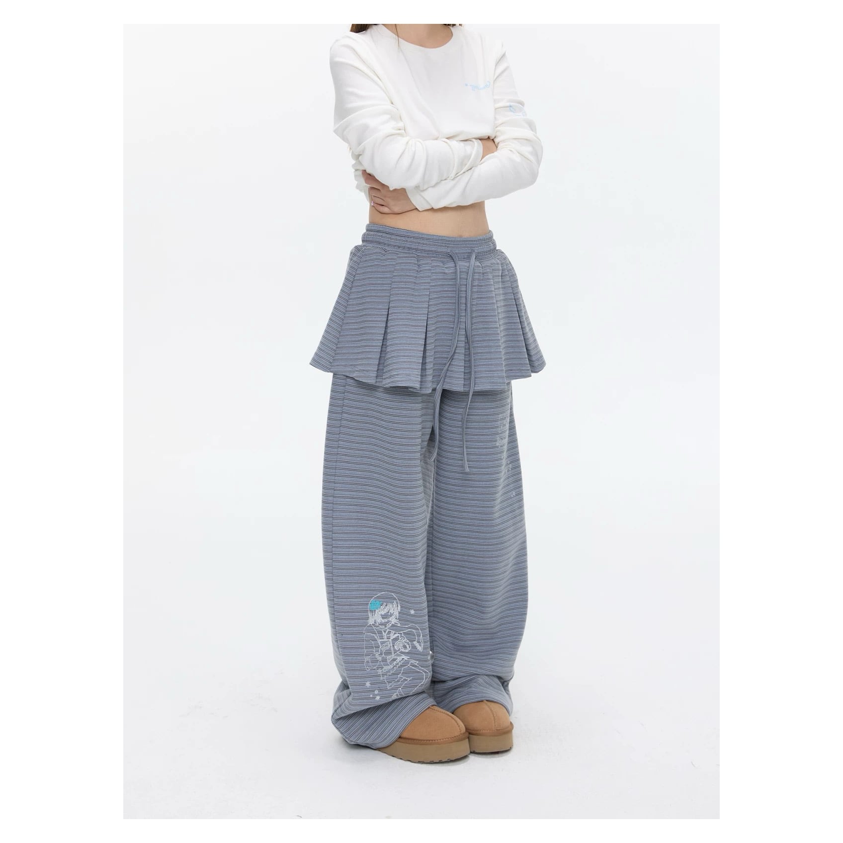 [BETWEENAND] Gray Blue Stripe Casual Pants