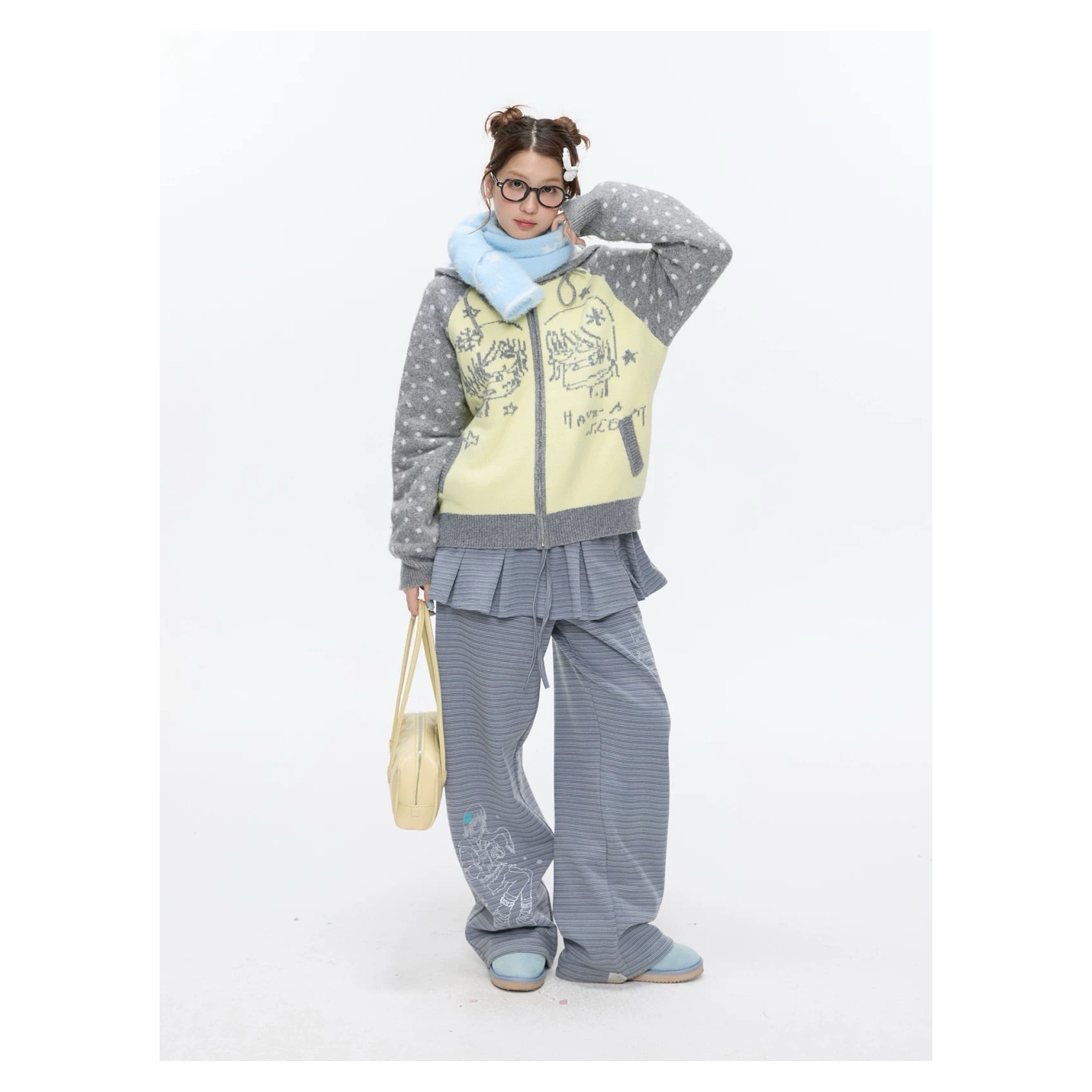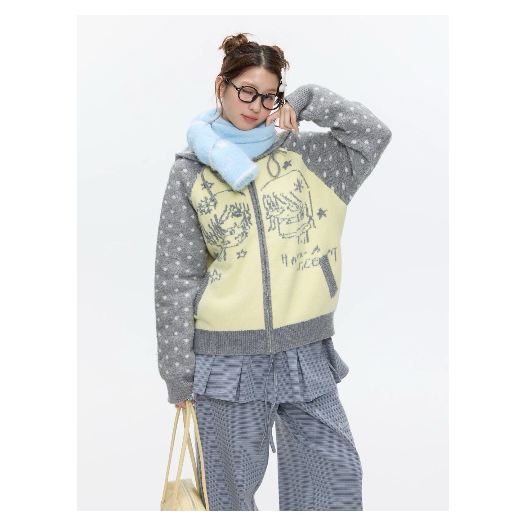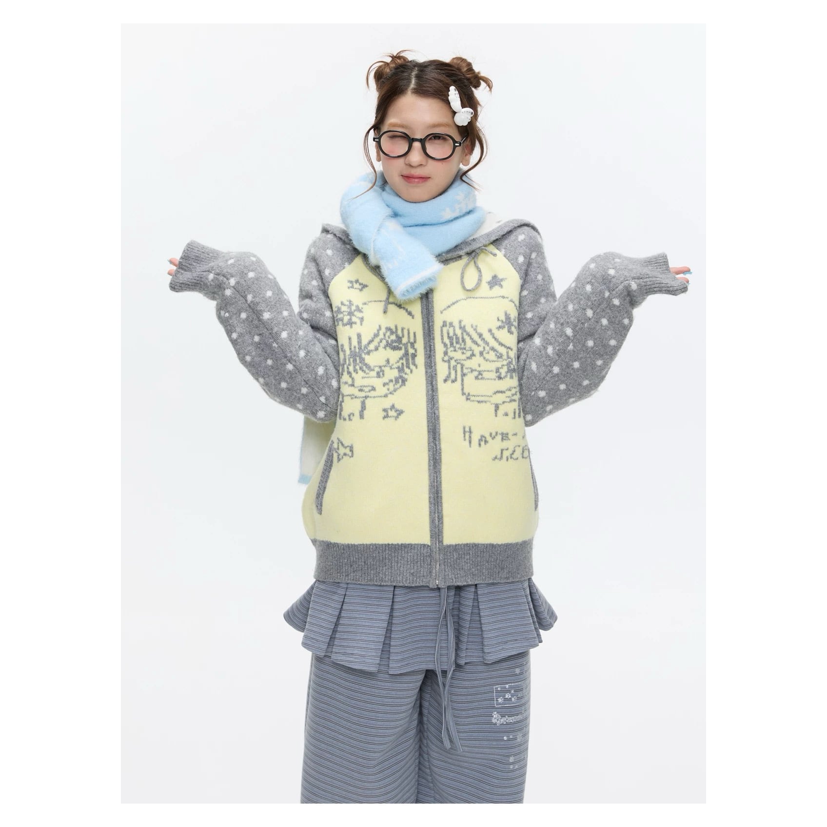 [BETWEENAND] Yellow Gray Dot Soft Embroidered Sweater
