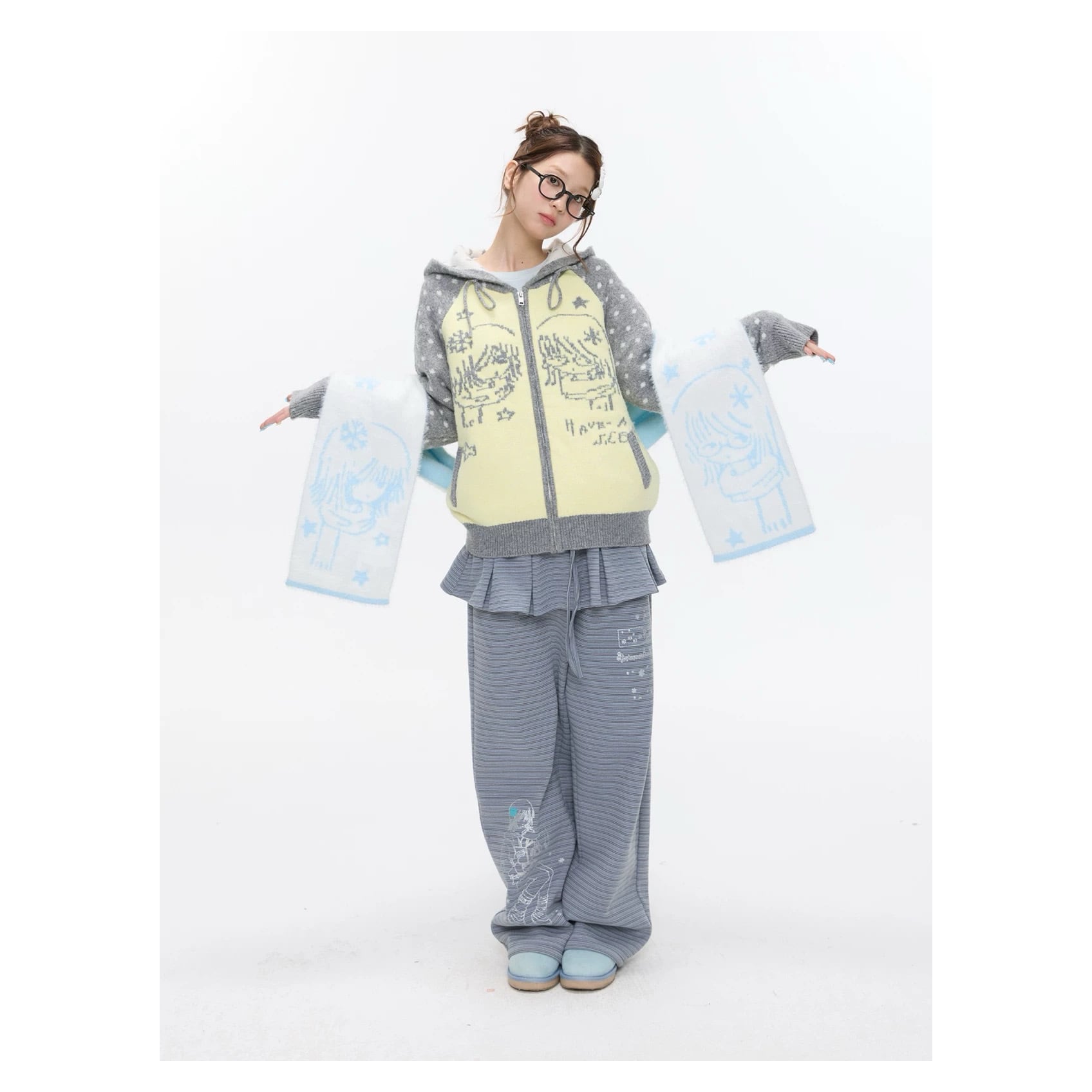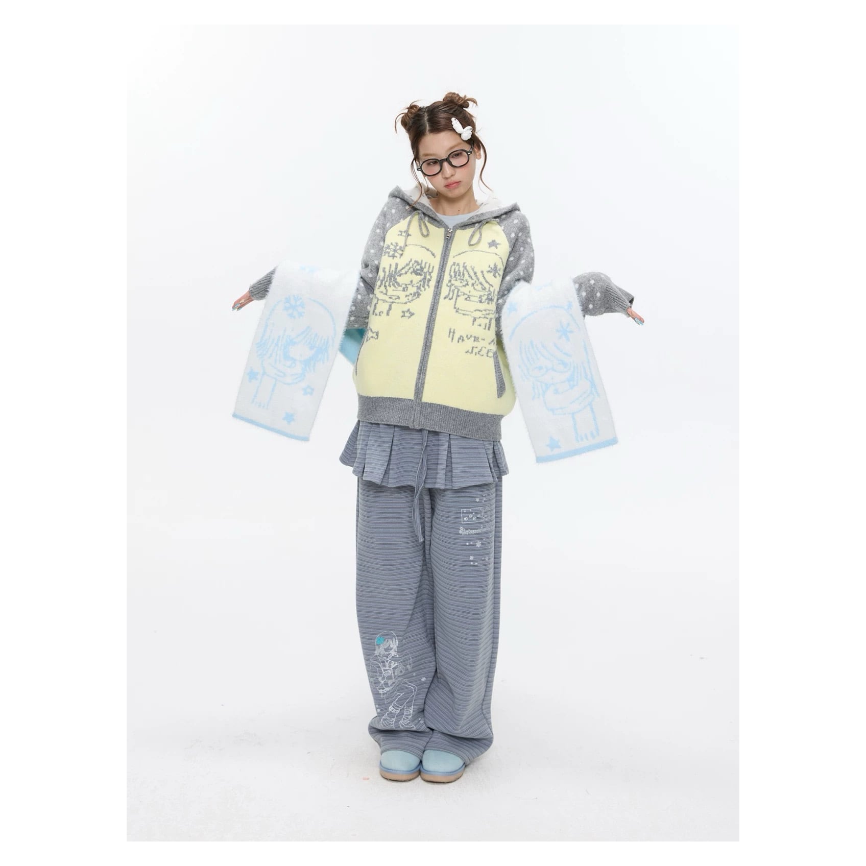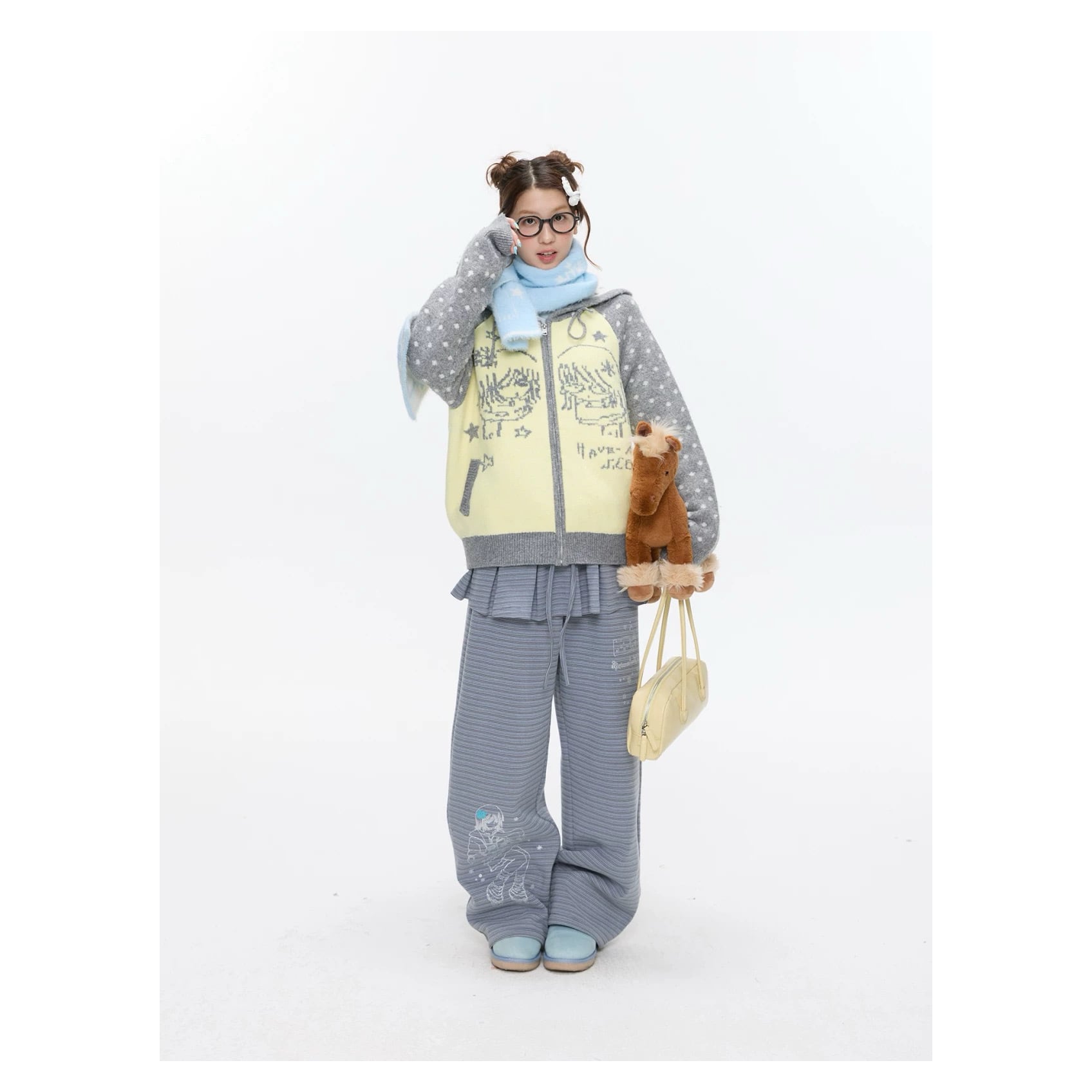 [BETWEENAND] Yellow Gray Dot Soft Embroidered Sweater