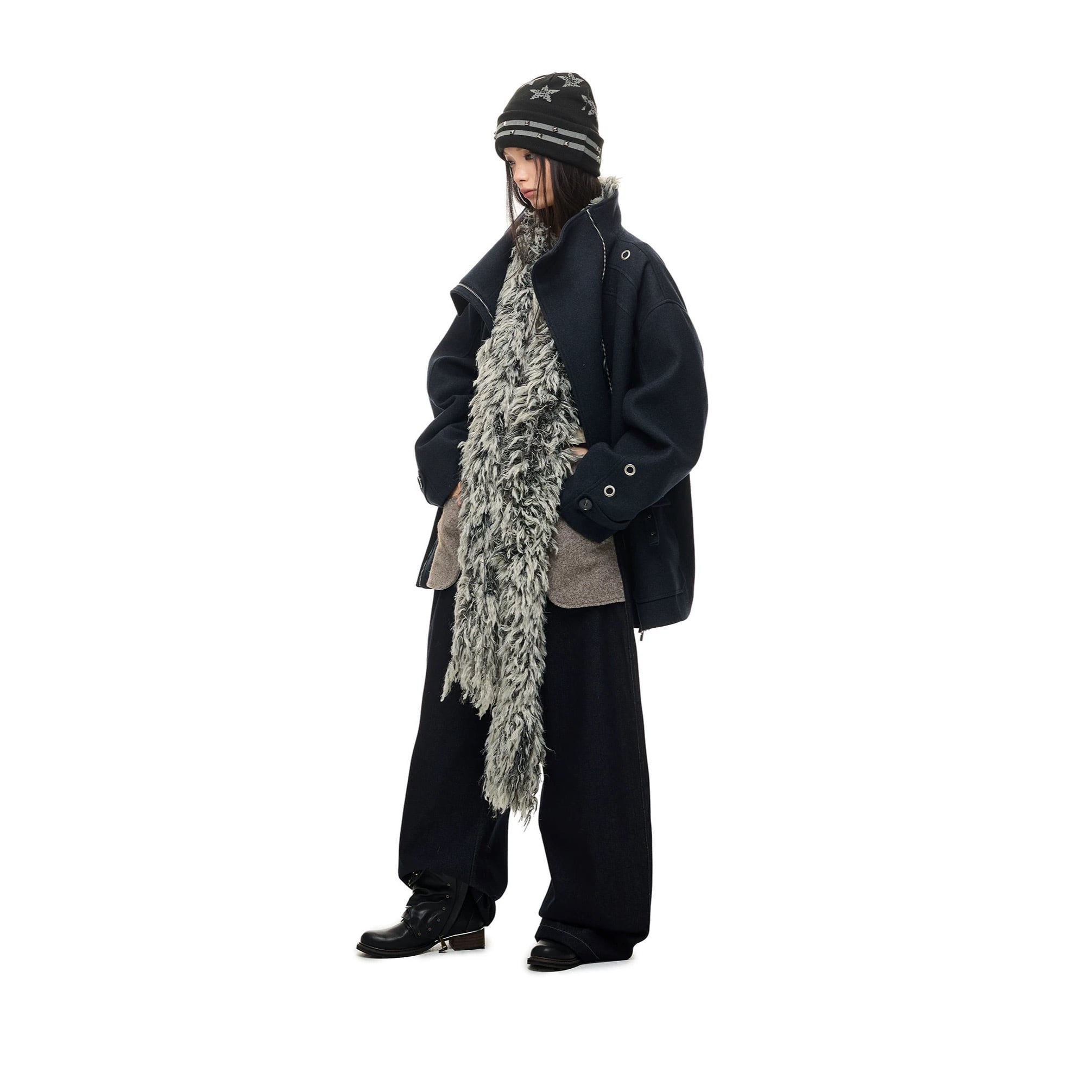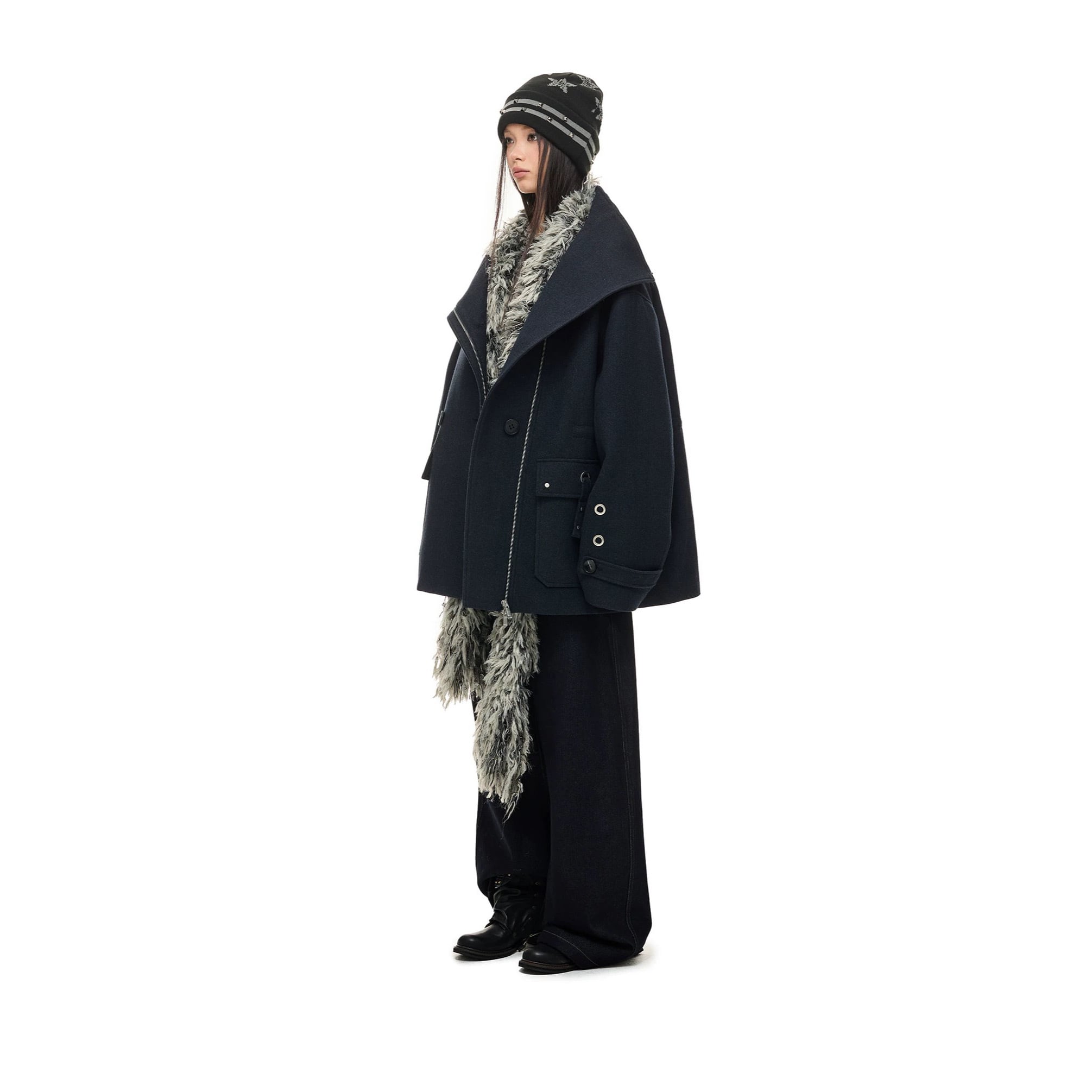 [JIKOO] Double-breasted Medium Wool Coat