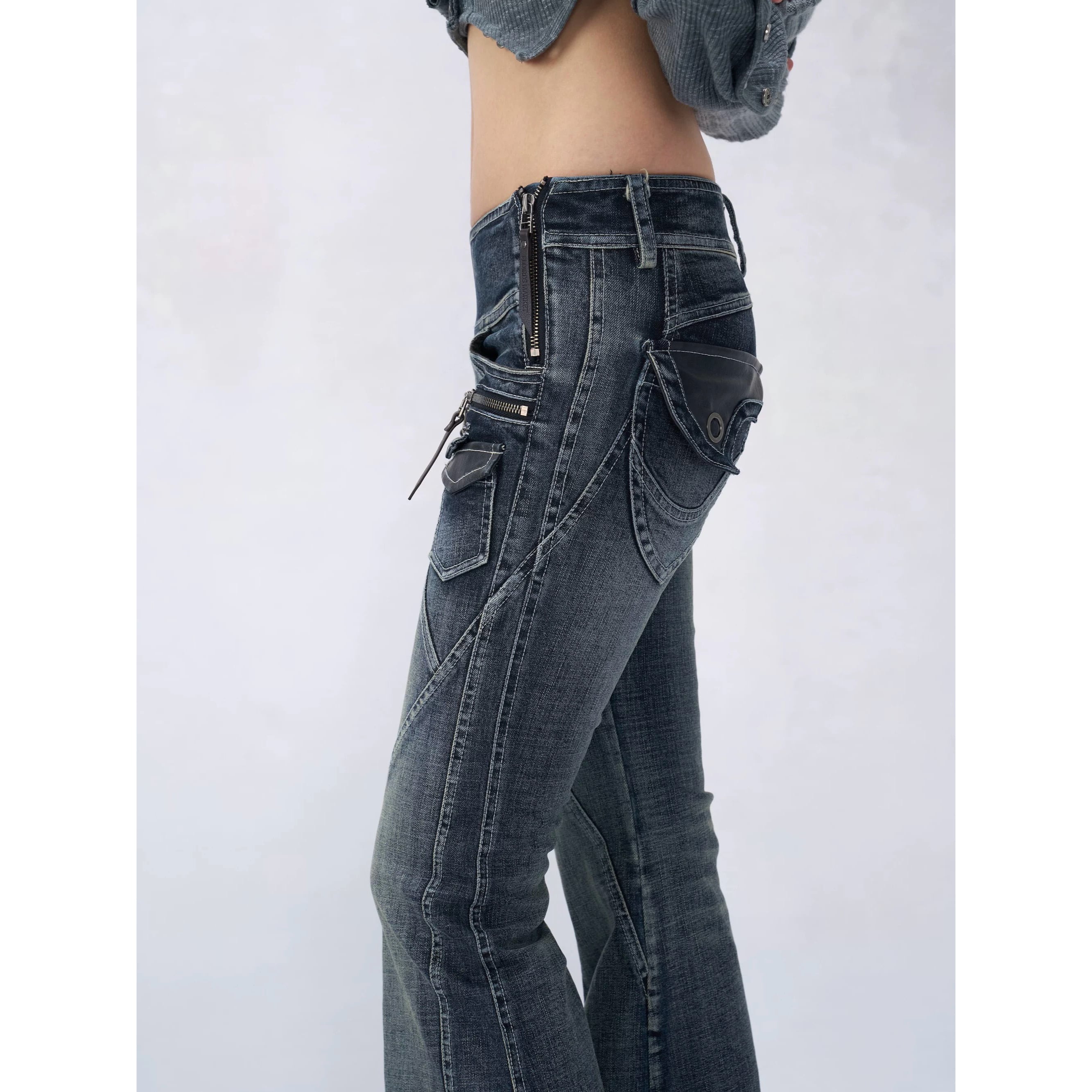 [Flowers birds market] Wash Low-Waisted Slimming Jeans Pants