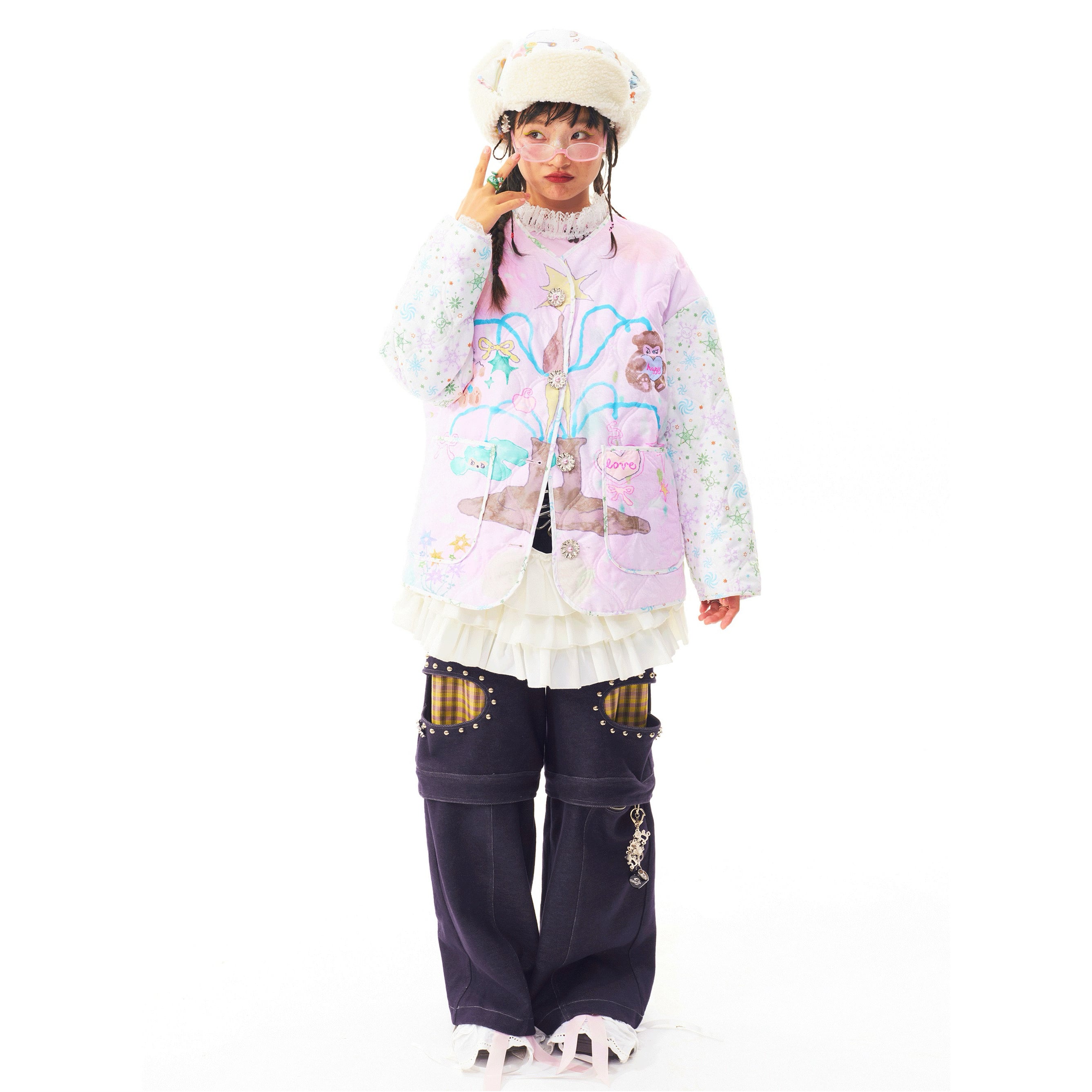 [Sillysis] pink cute illustration double-sided quilted jacket