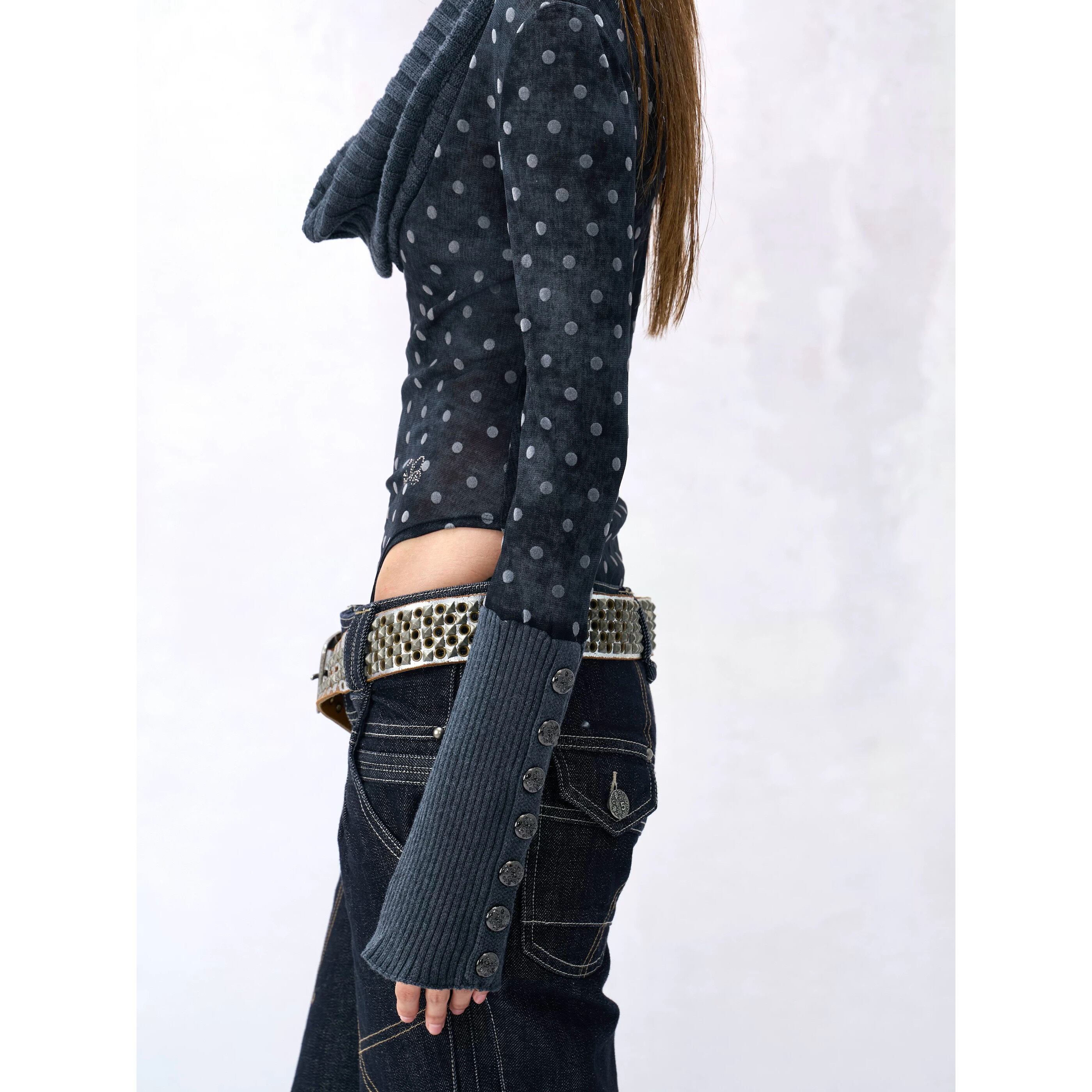 [Flowers birds market] Vintage Blue Spotted Knit Collar Top