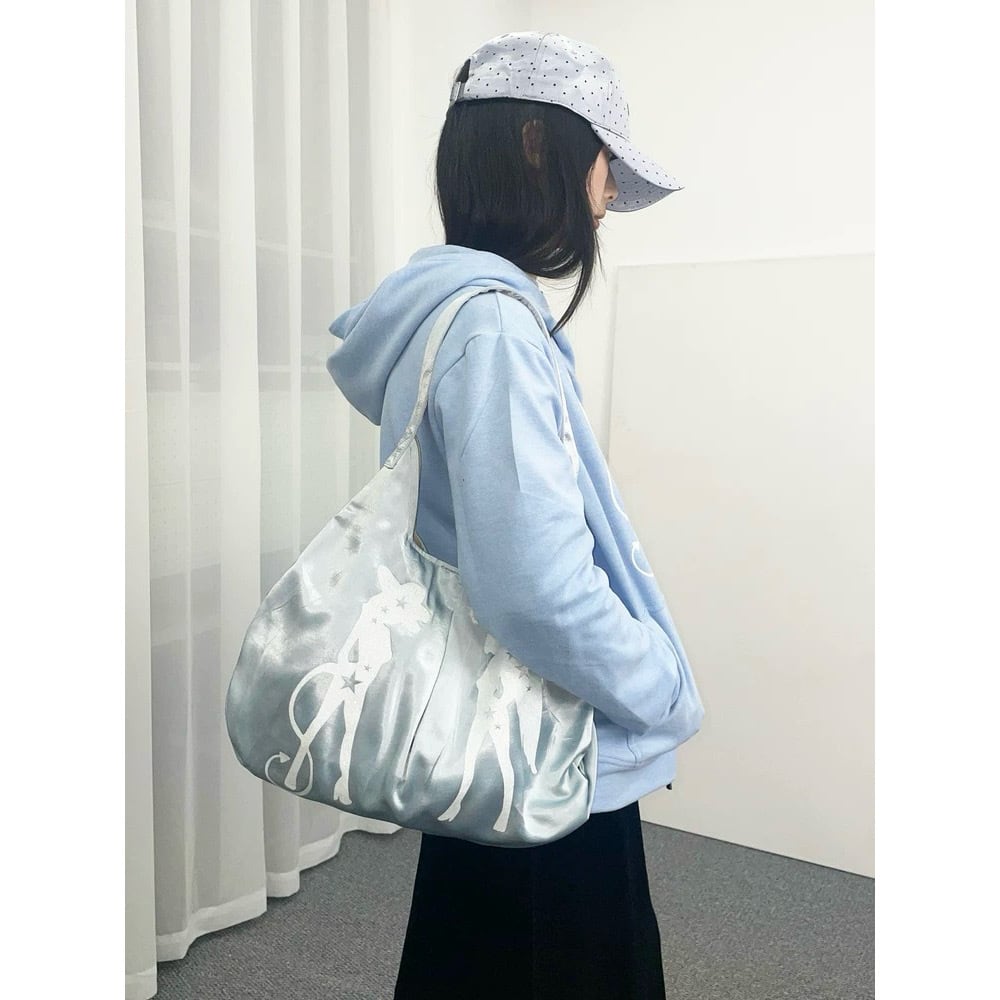 [takeabreak] light blue silk girl tote bag