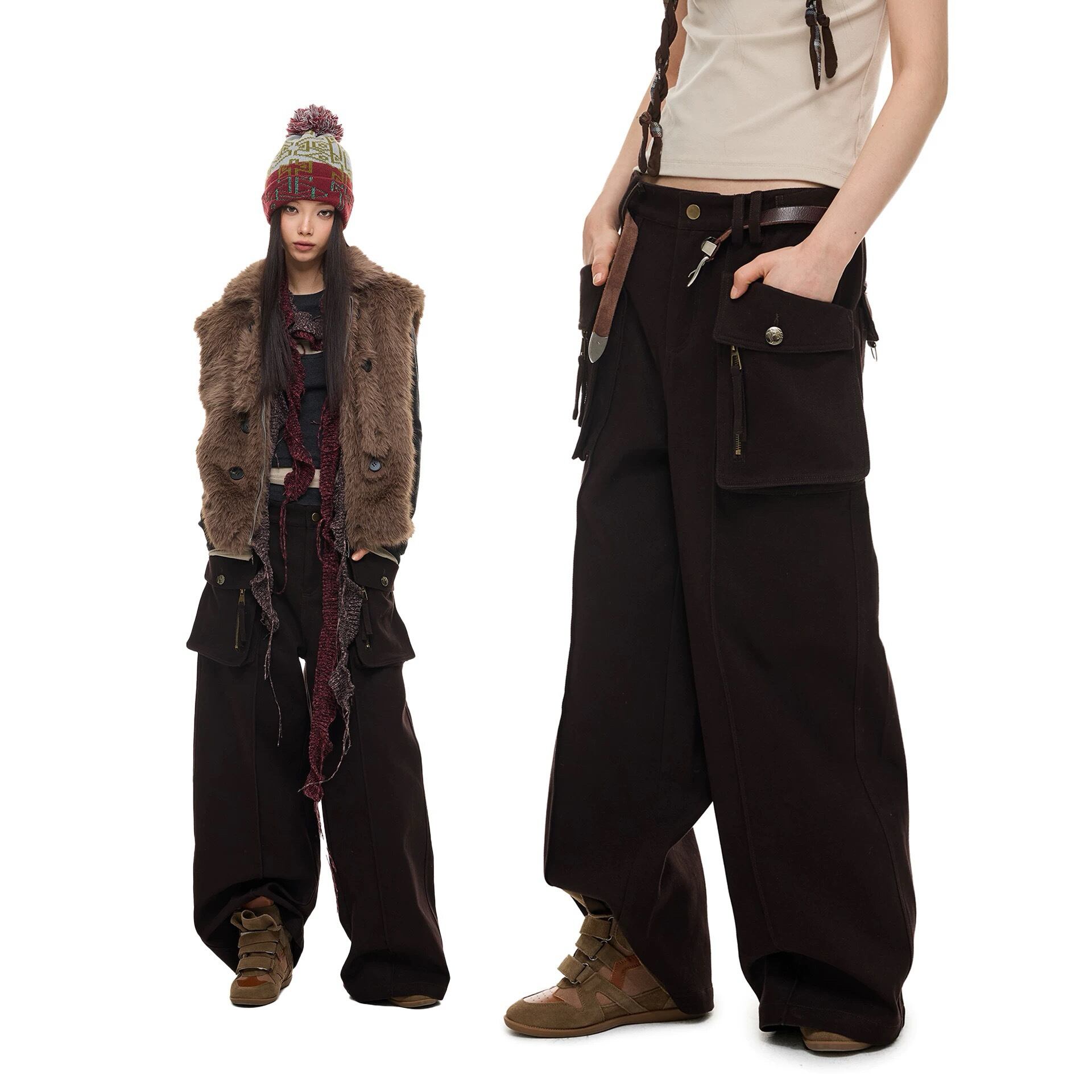 [JIKOO] Vintage Pocket Loose Workwear Pants