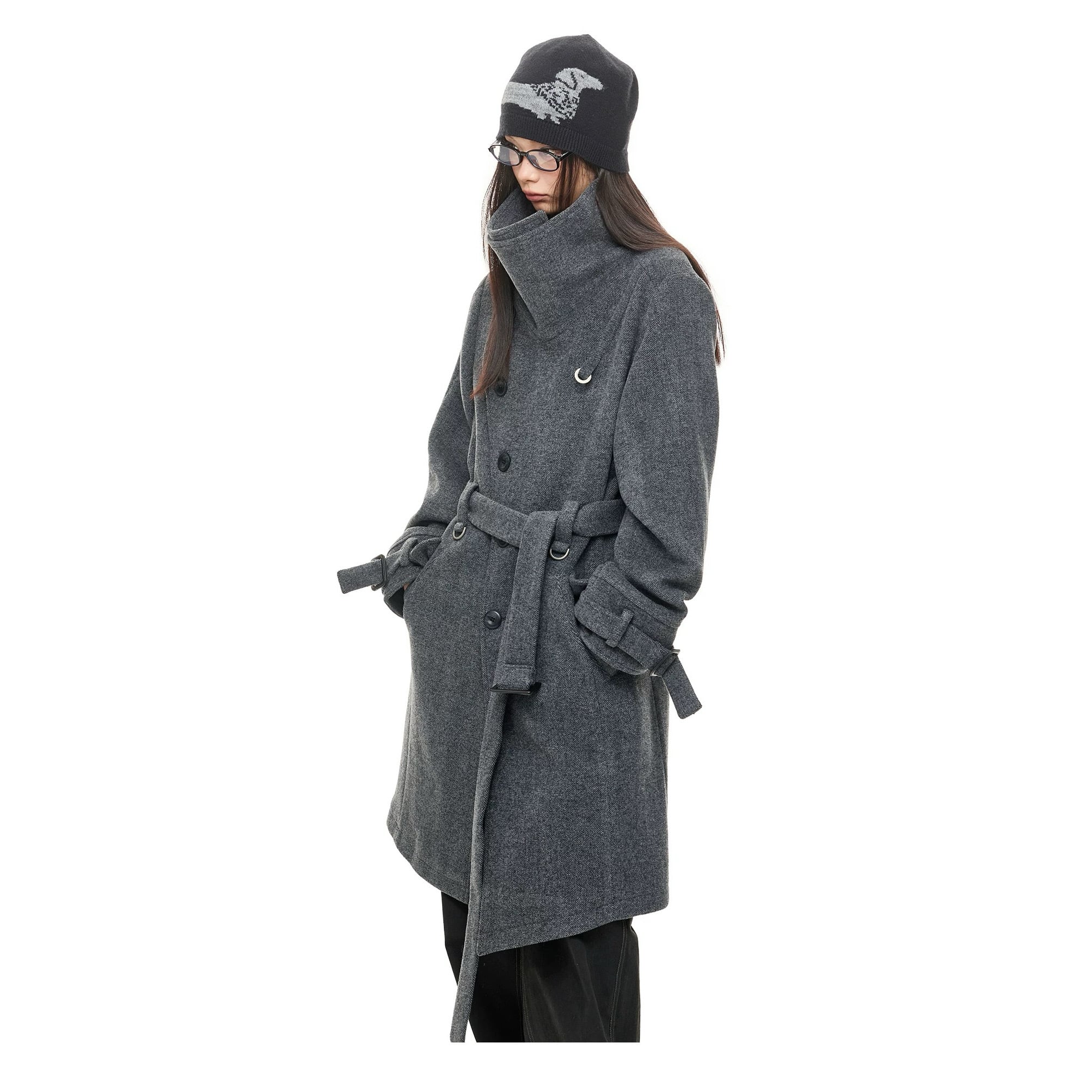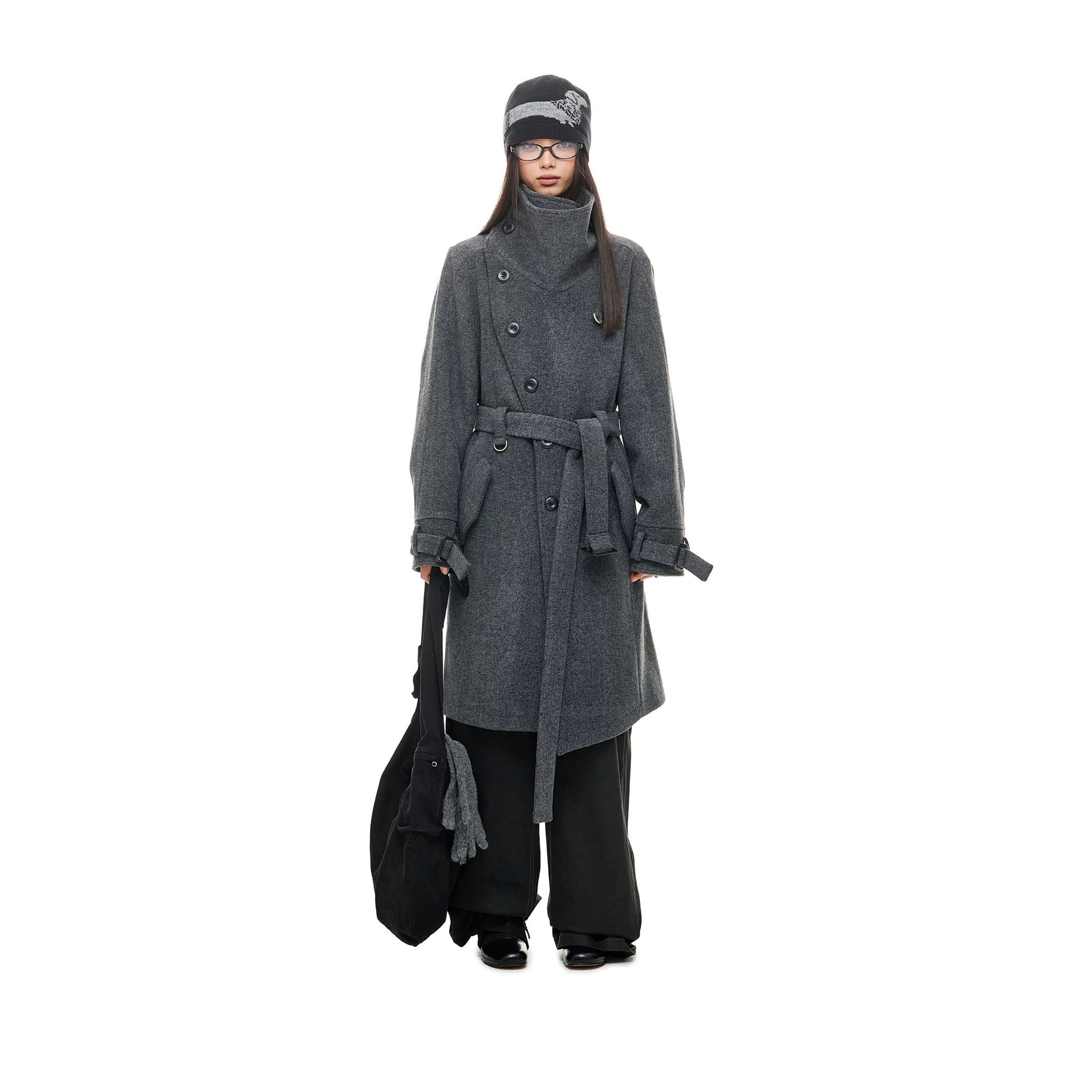 [JIKOO] Gray Vintage Stand Collar Wool Coat