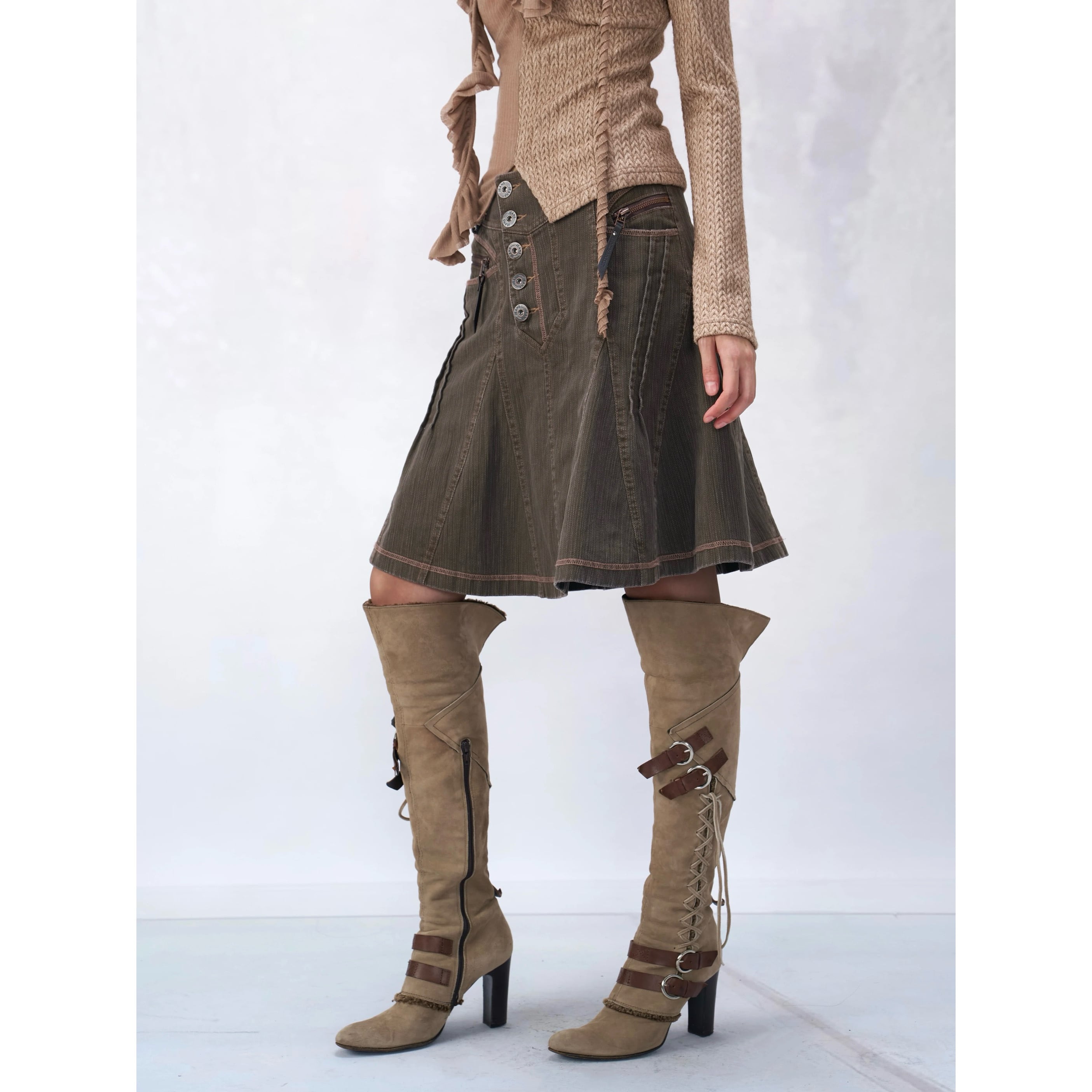 [Flowers birds market] Brown Washable Old Umbrella Skirt