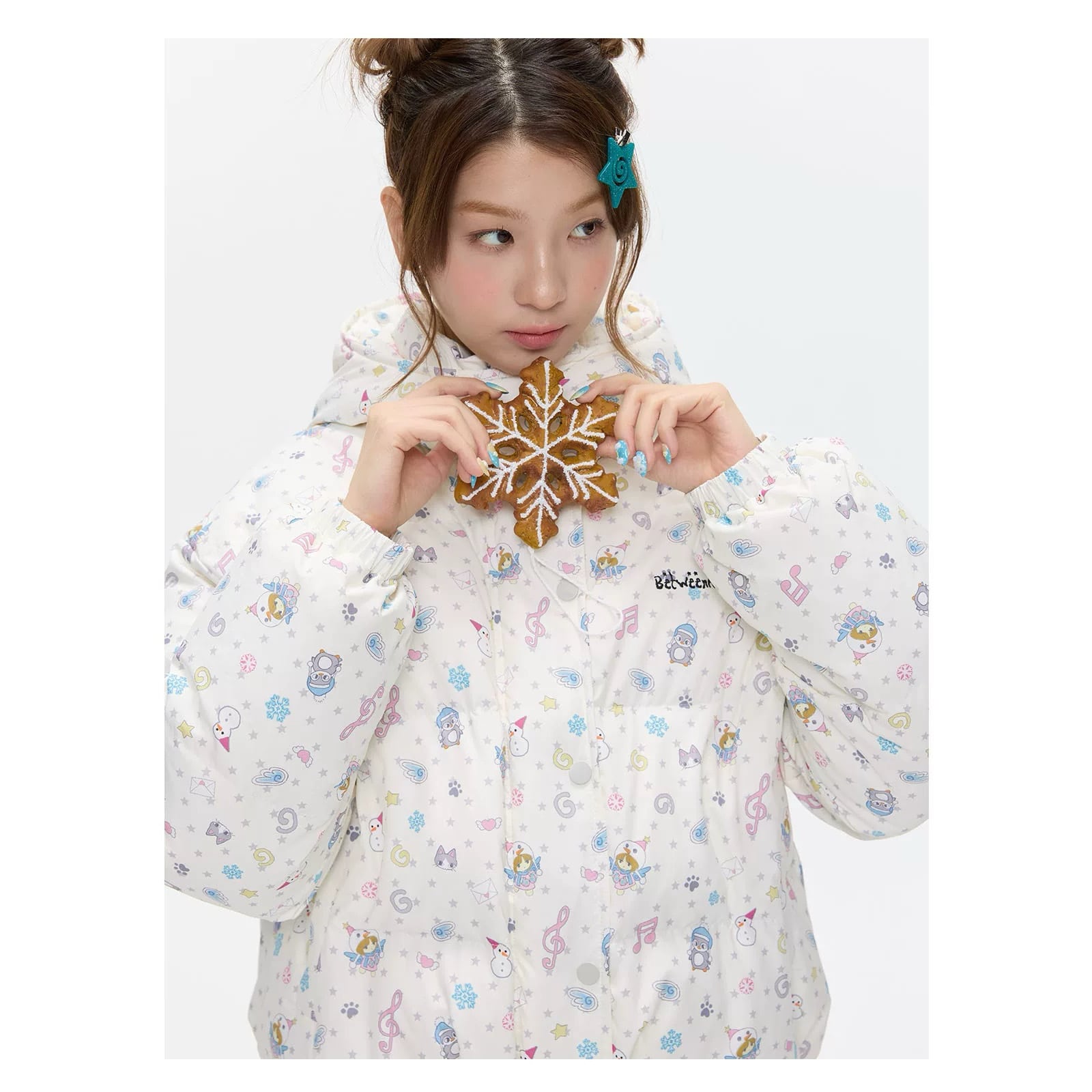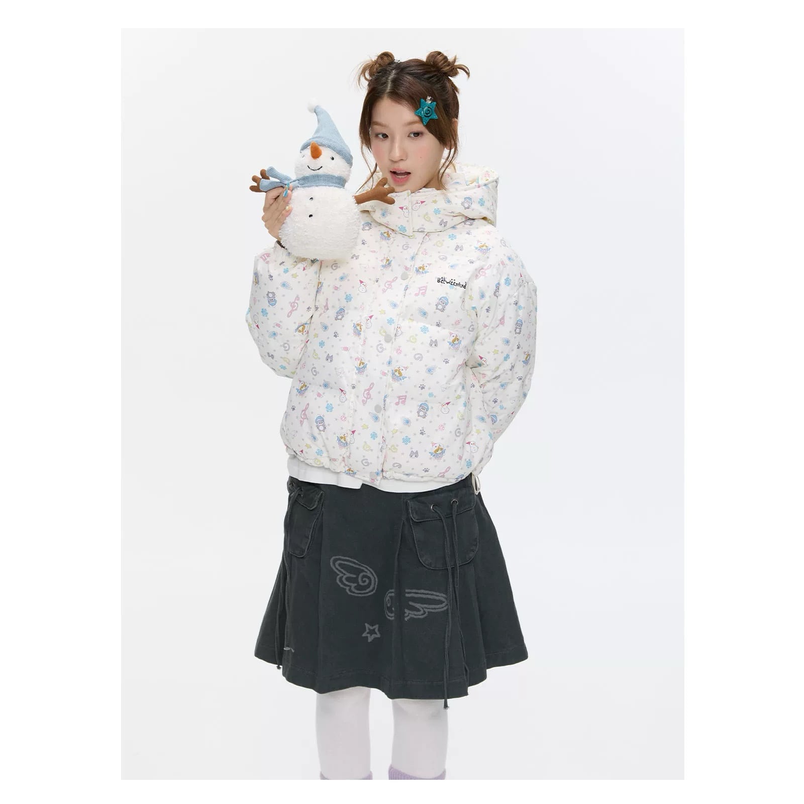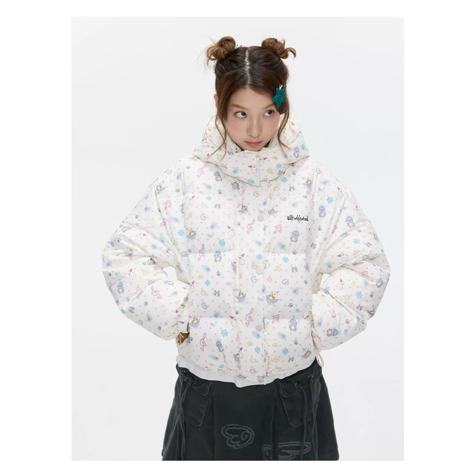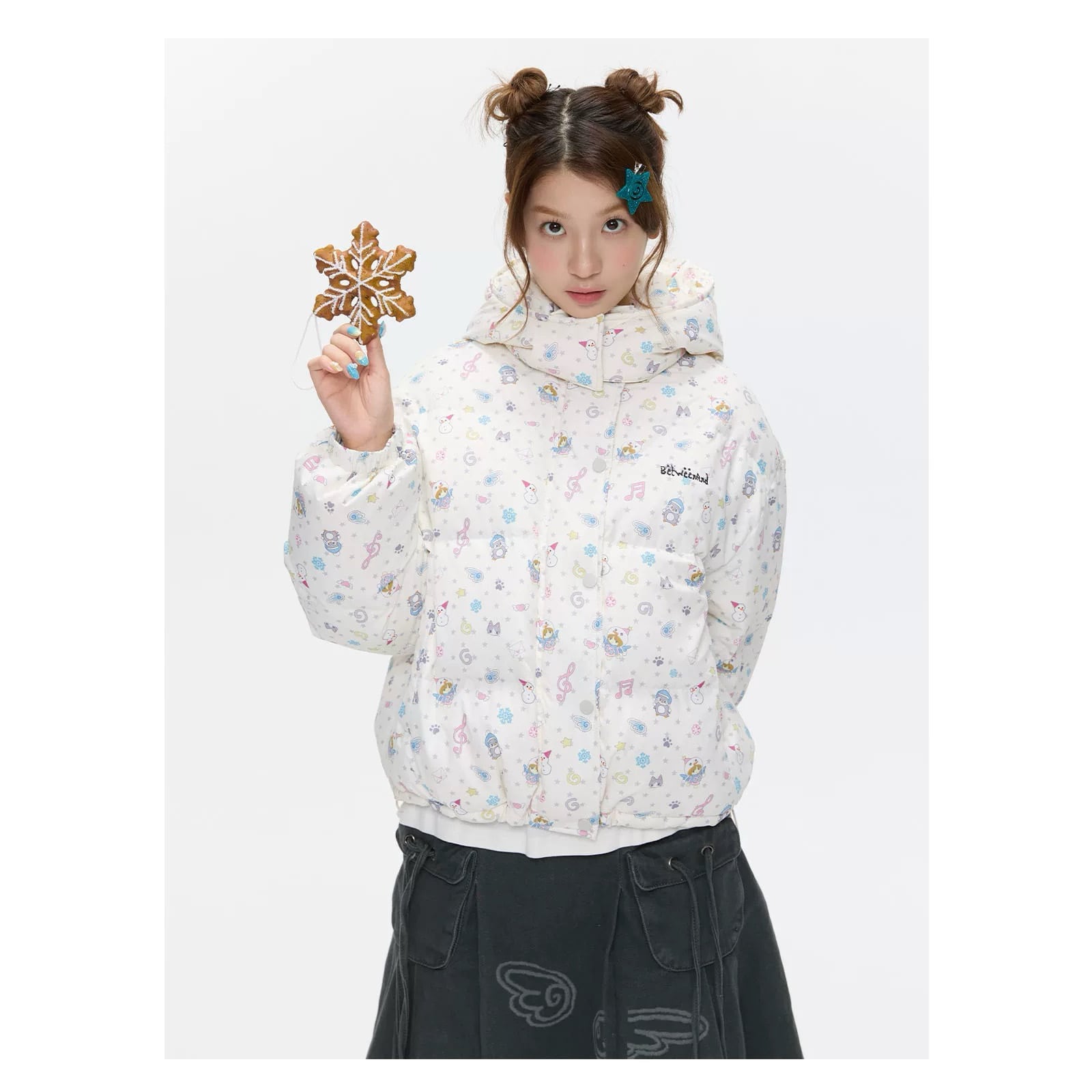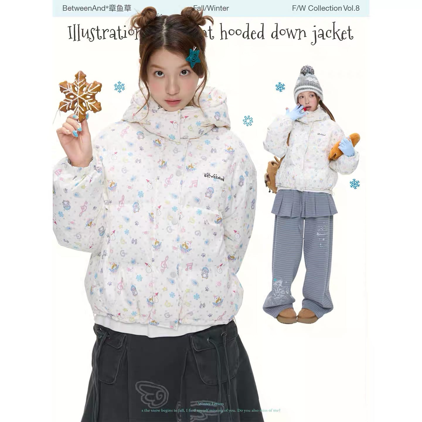 [BETWEENAND] Winter White Hooded Down Jacket