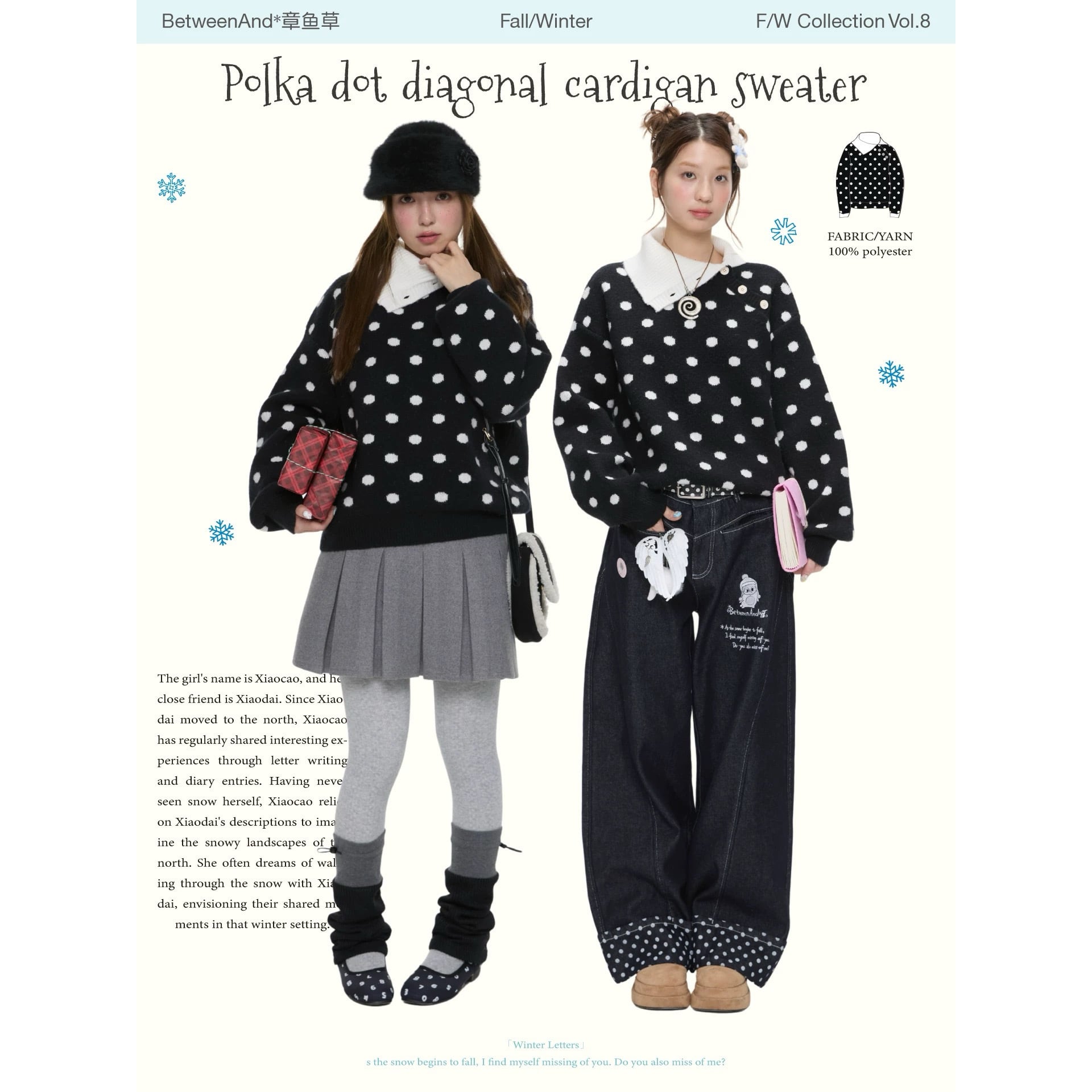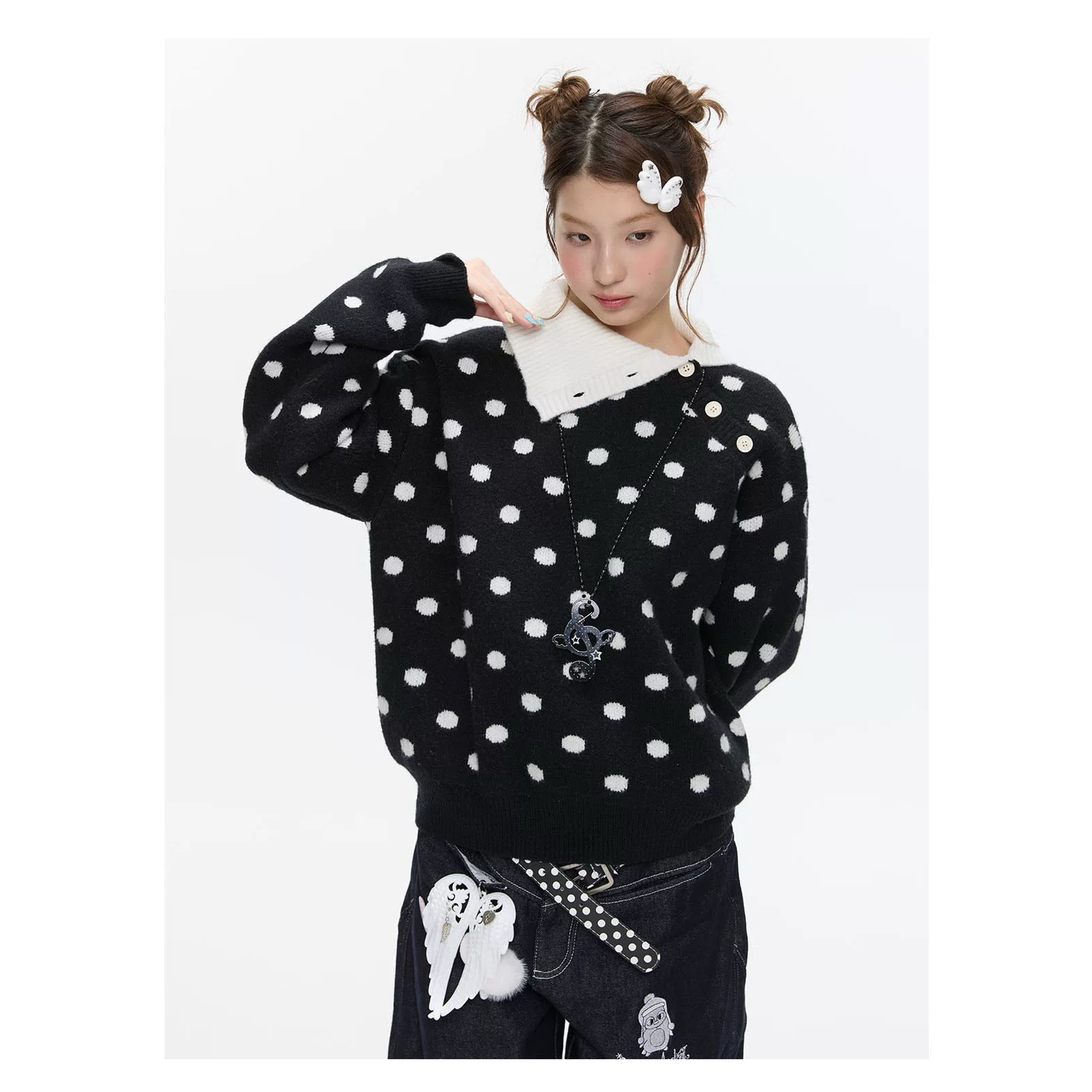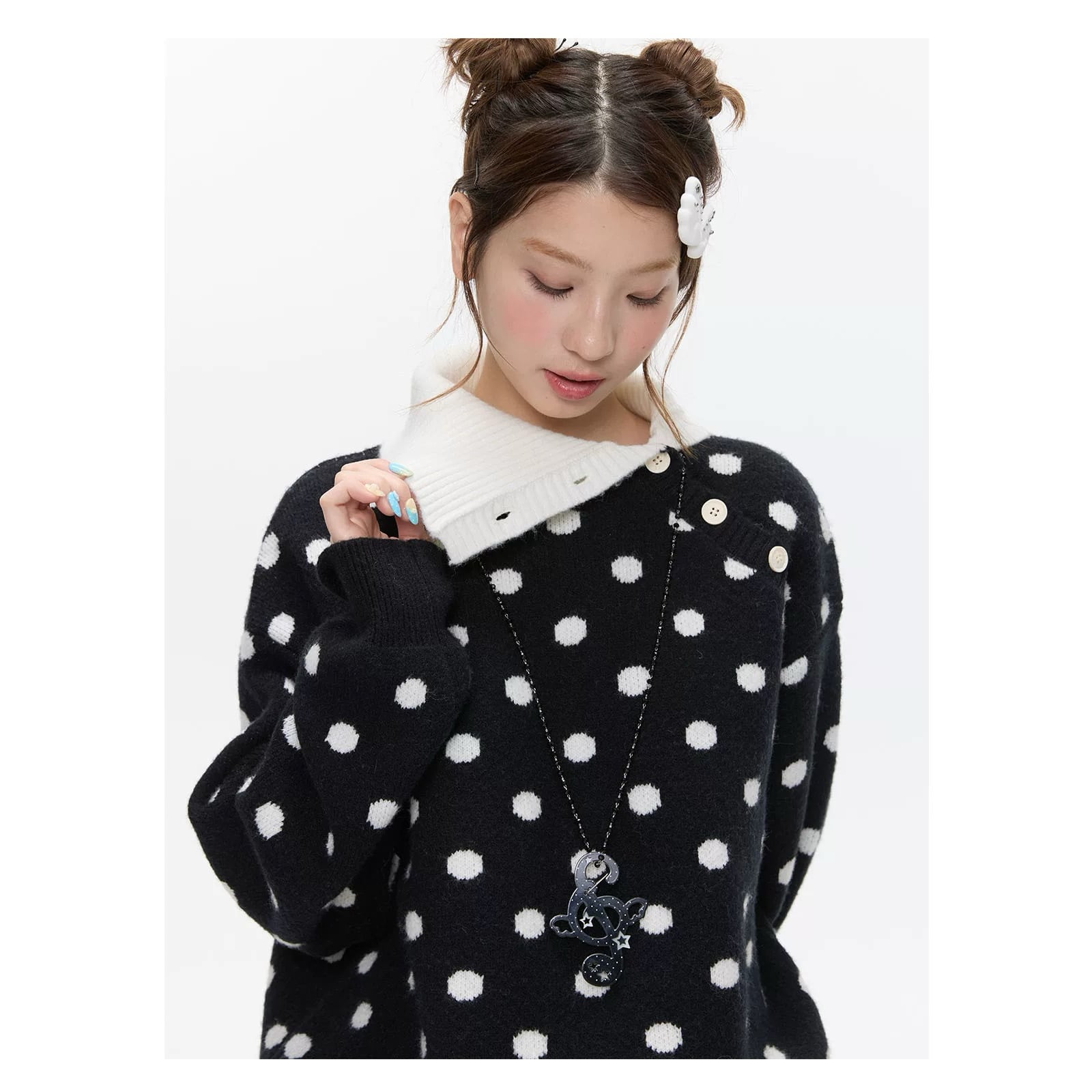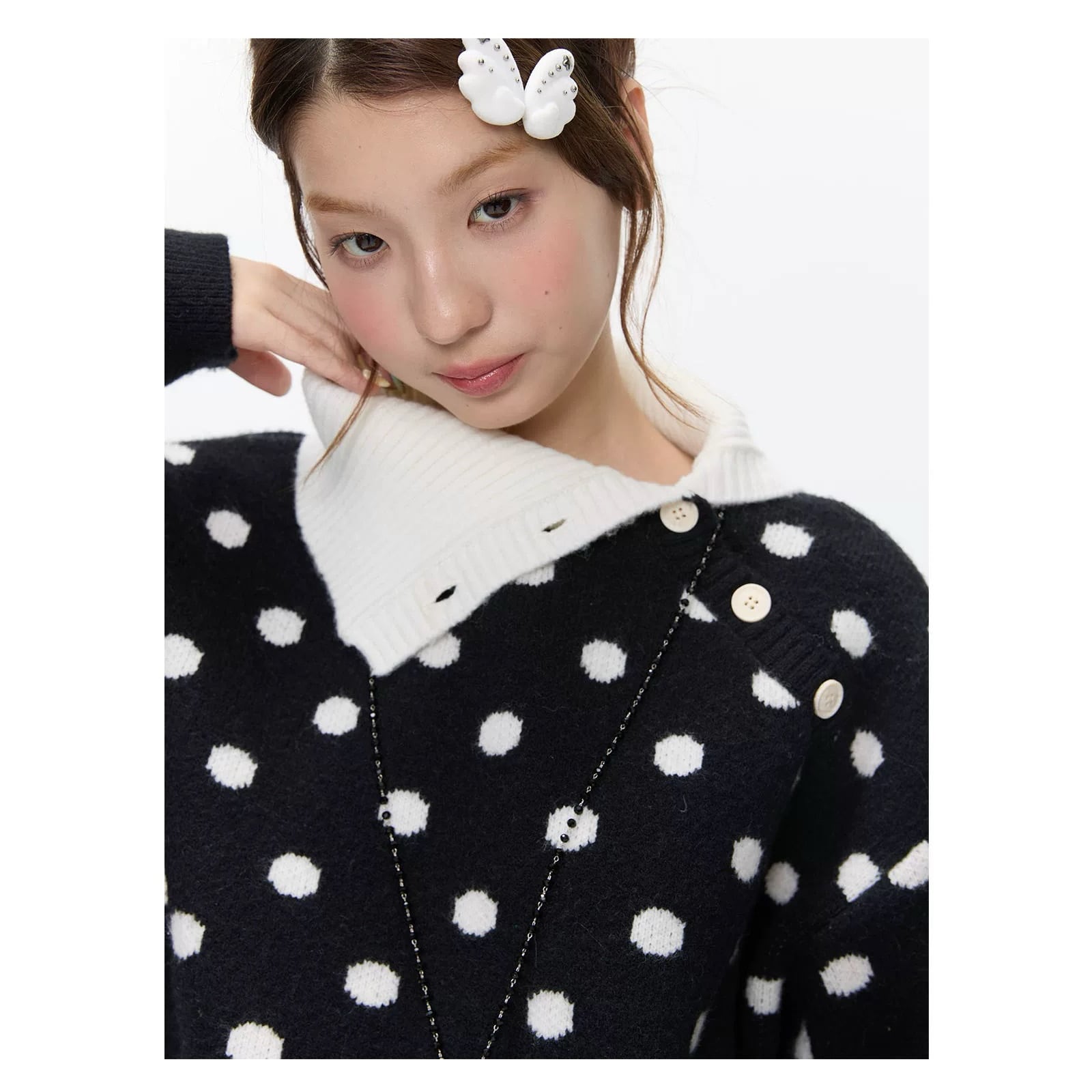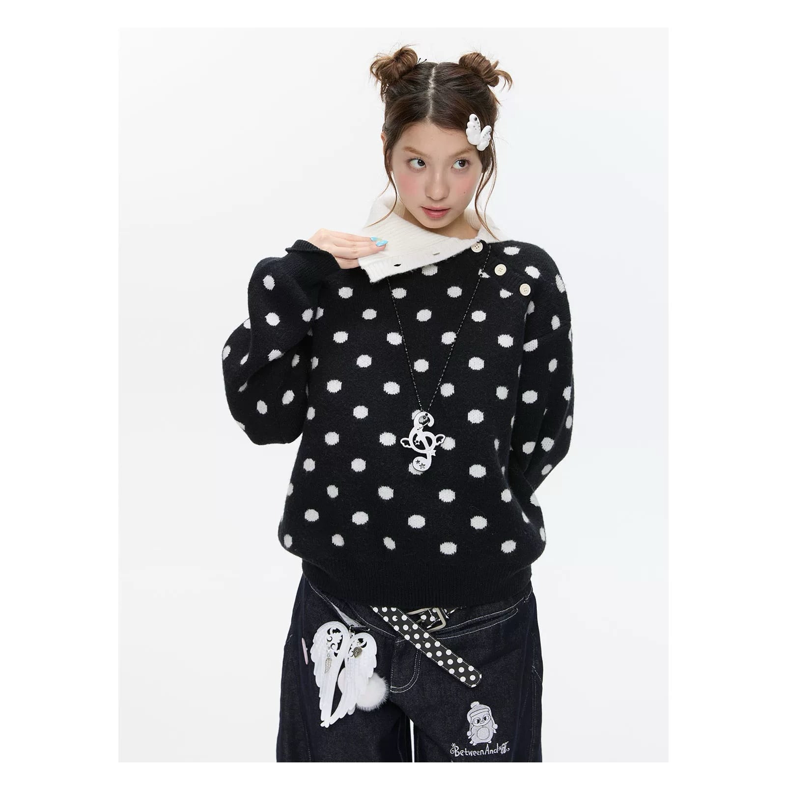 [BETWEENAND] Black Sugar Pop Slope Collar Knit Top
