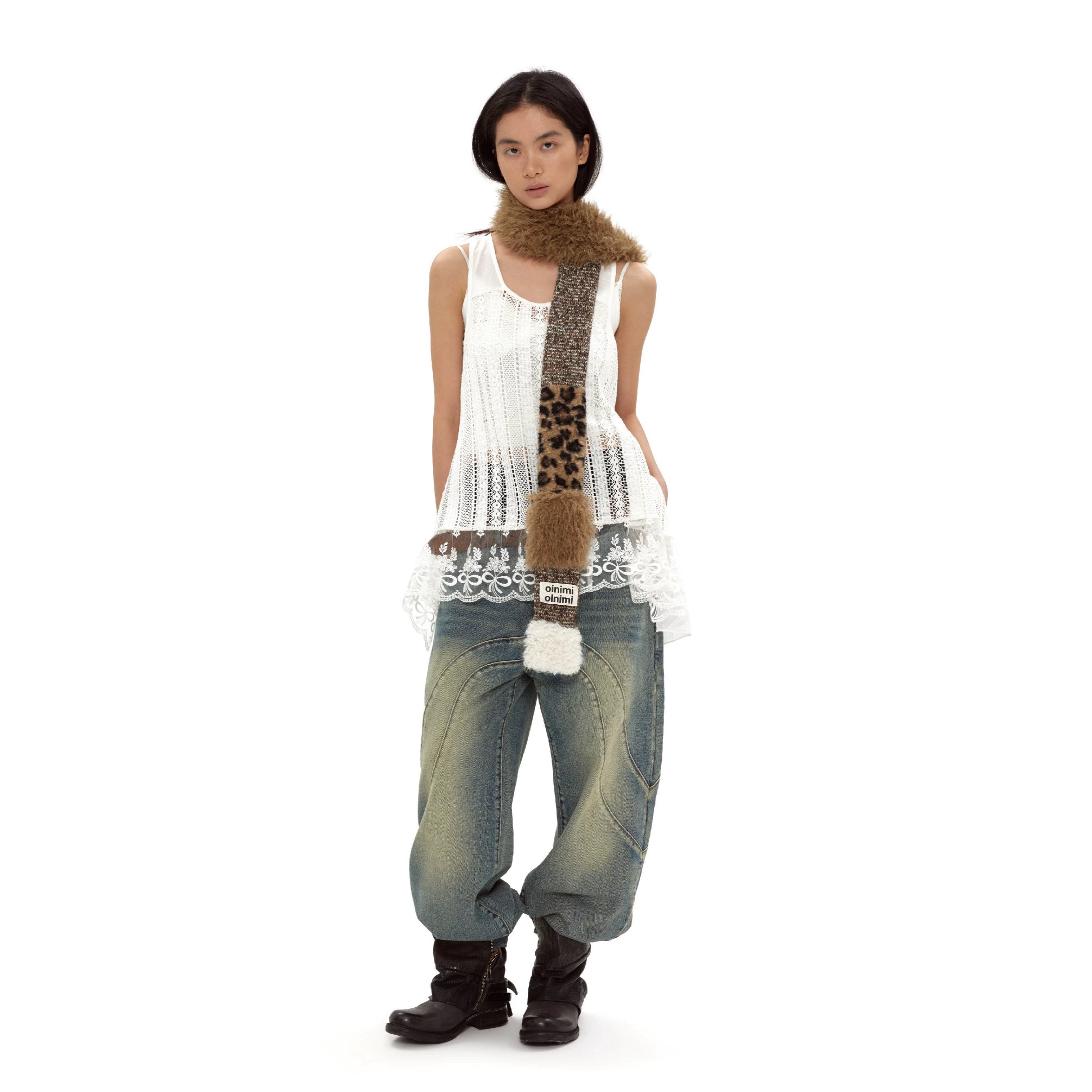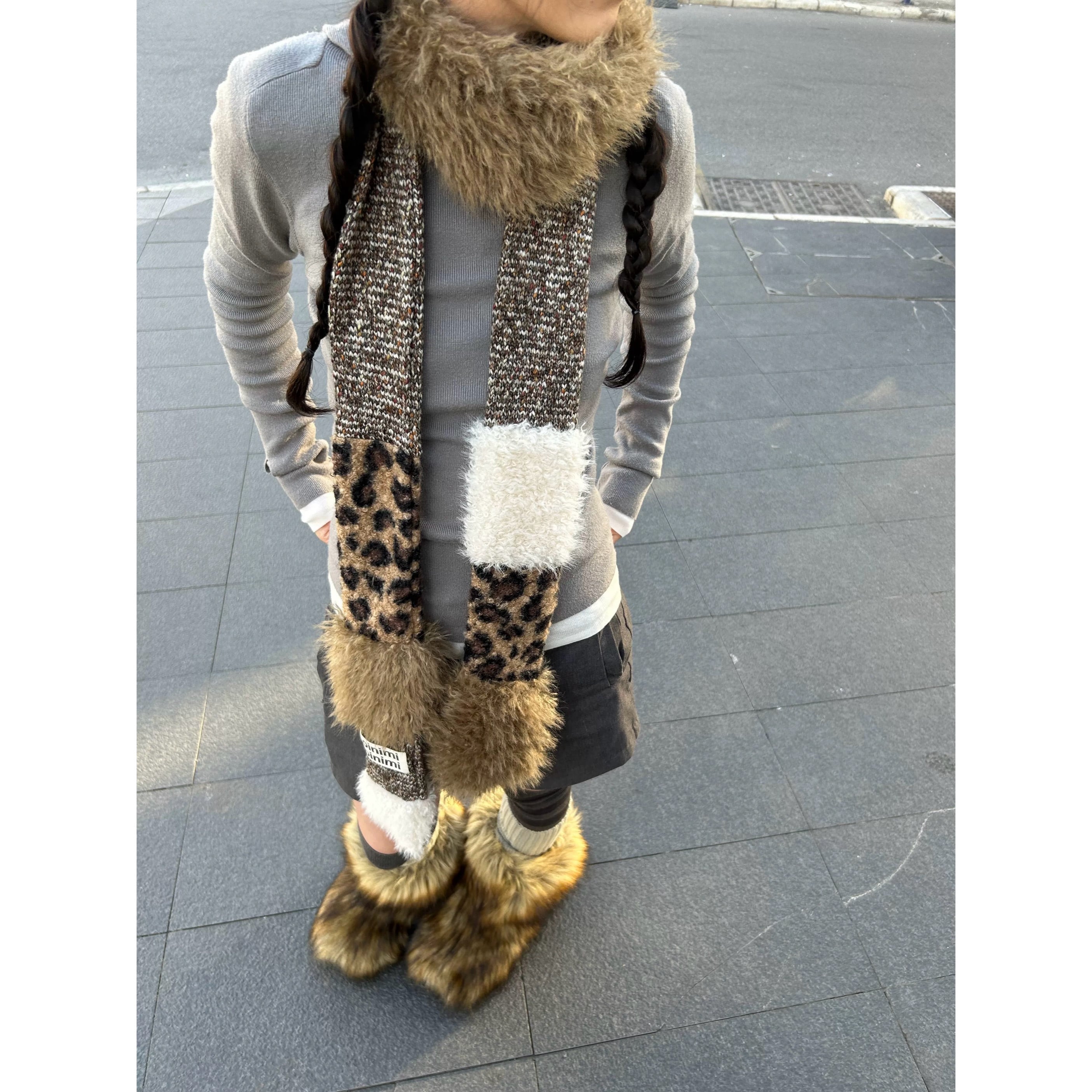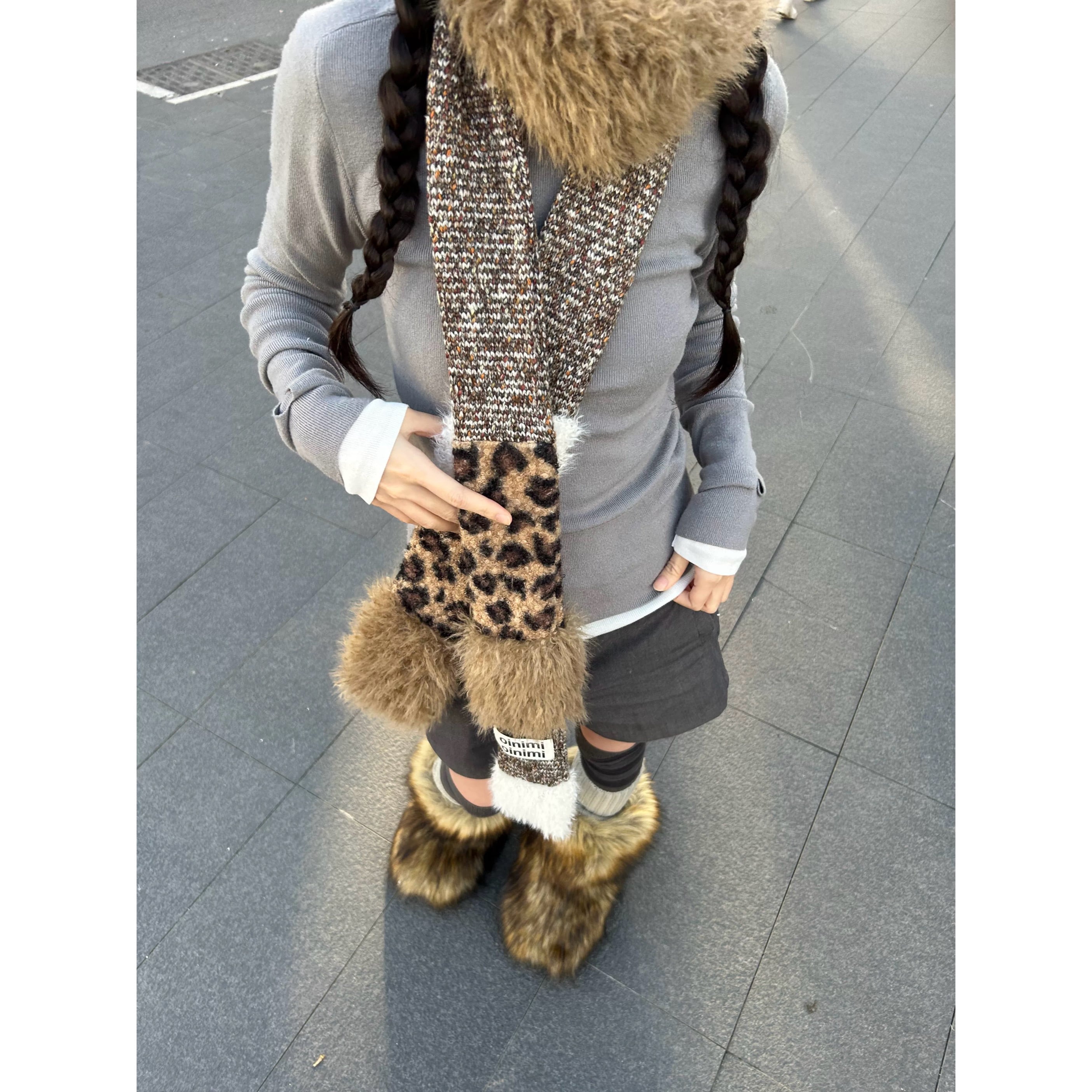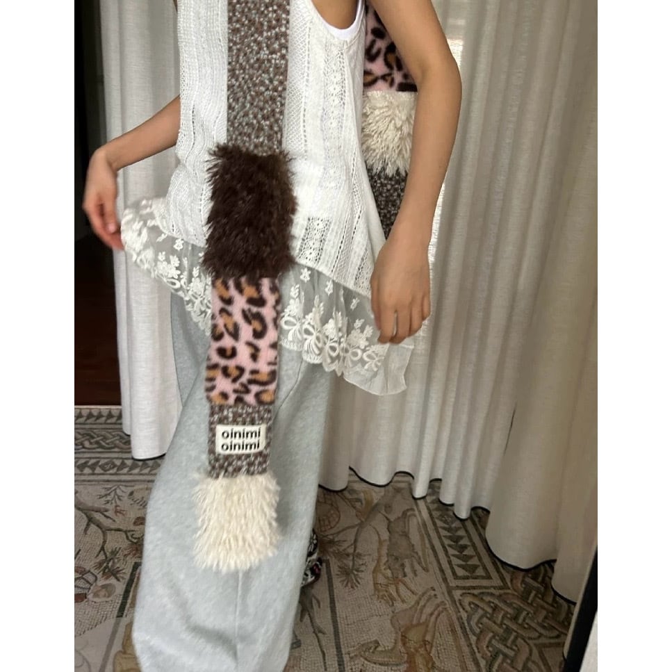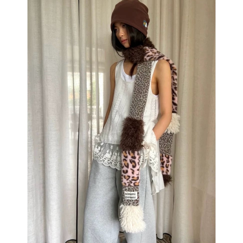[oinimi] leopard knit scarf