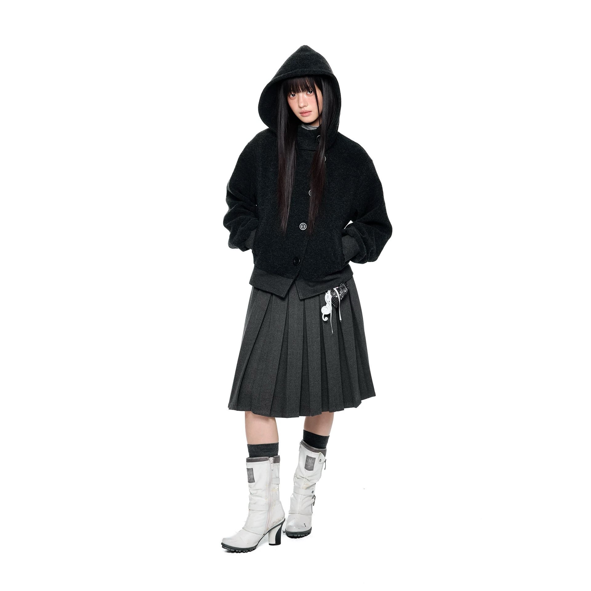 [EZEK] academy short woolen hooded jacket