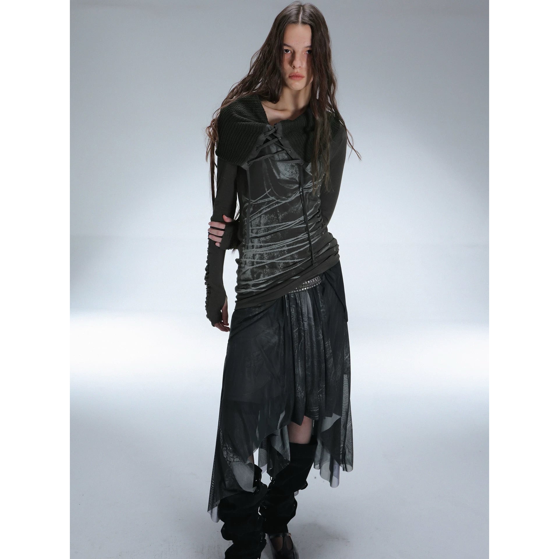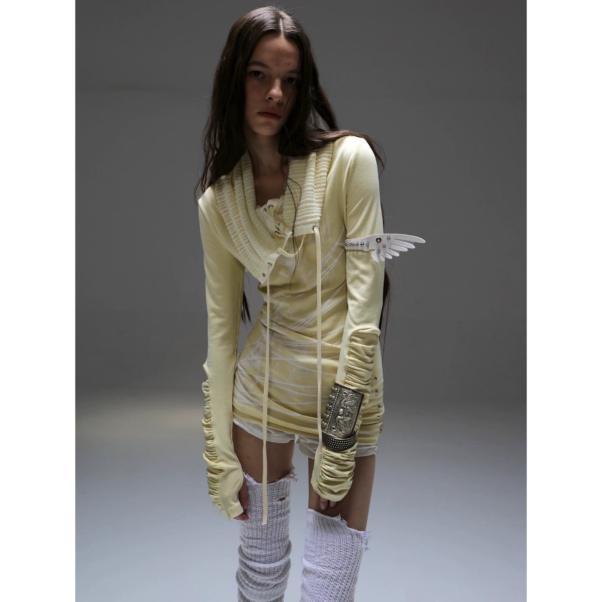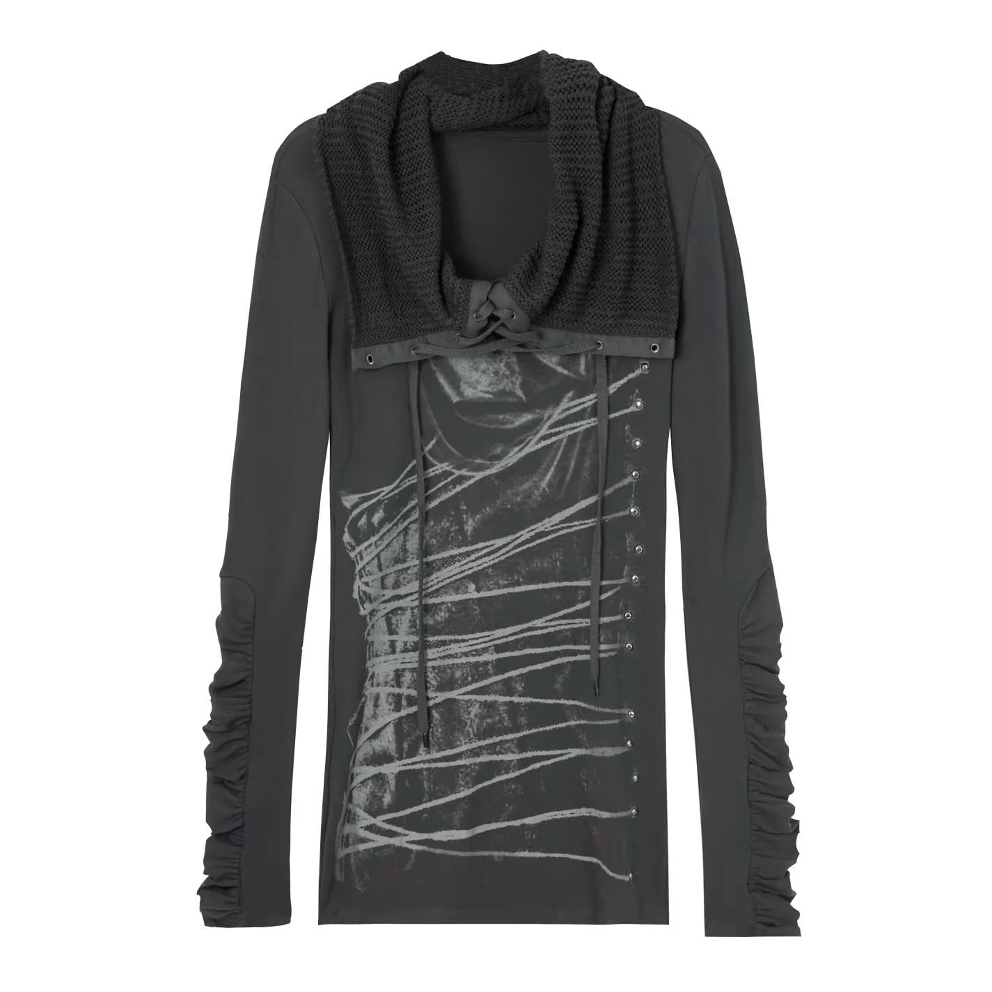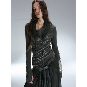 [DoublePunch] shoulder-knit stack collar strap top