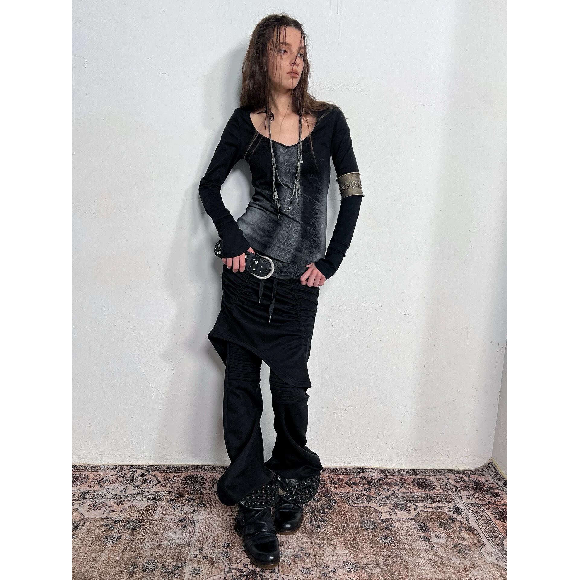 ⊹brand DoublePunch ⊹size S/着丈120ウエスト68-82ヒップ88 M/着丈123ウエスト72-92ヒップ92 ⊹model size 172㎝ / S
