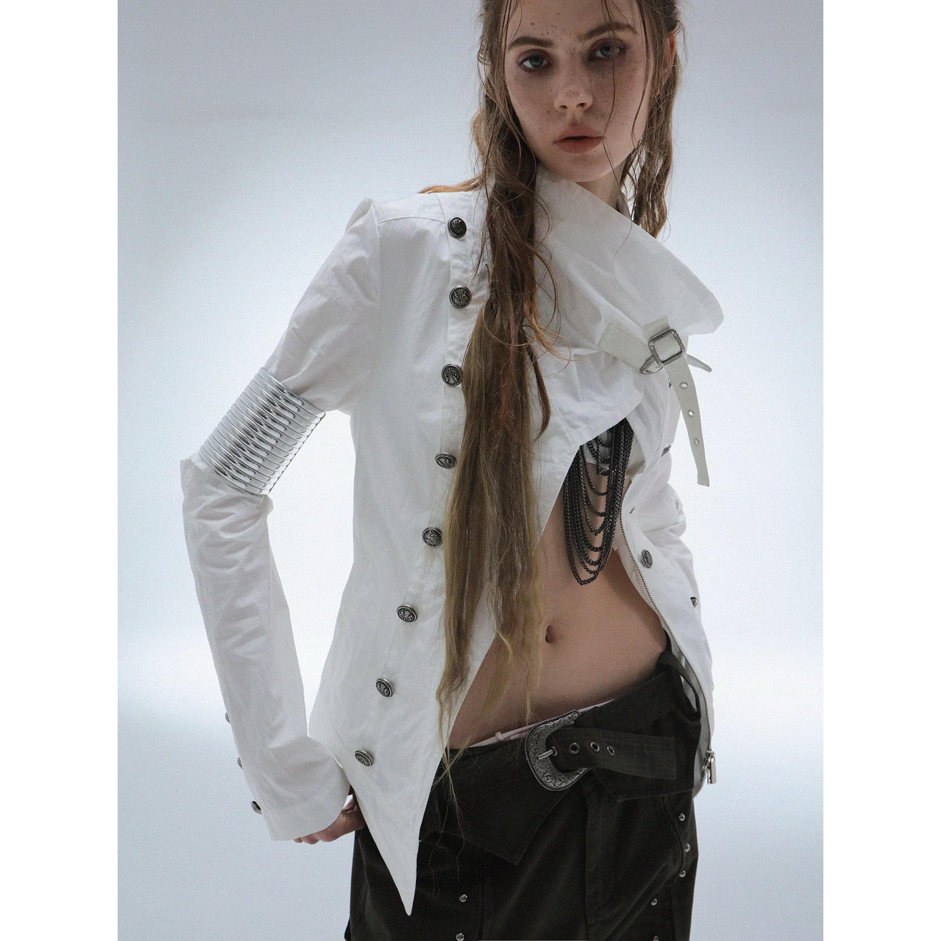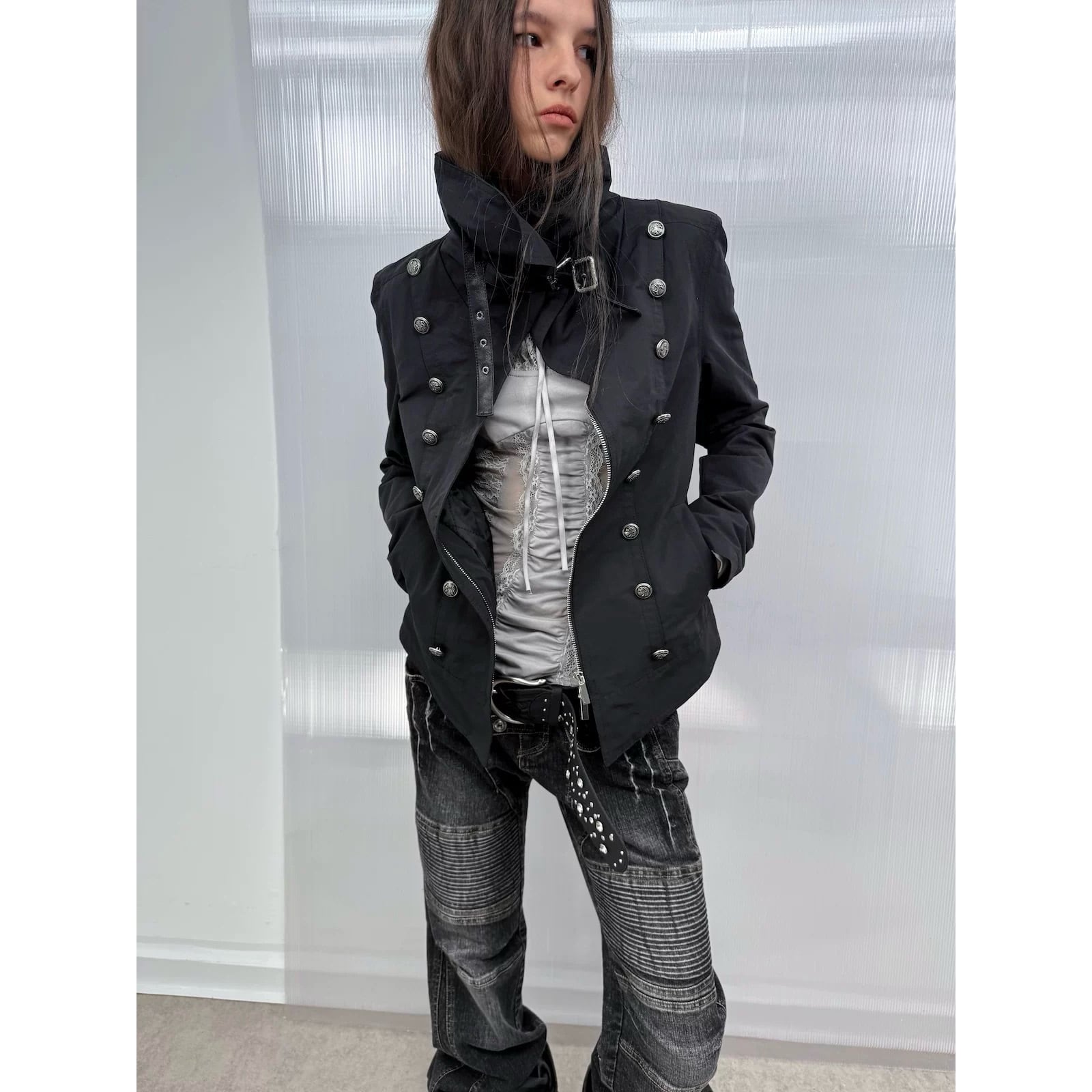 [DoublePunch] High-Neck Retro Metal Napoleon Jacket