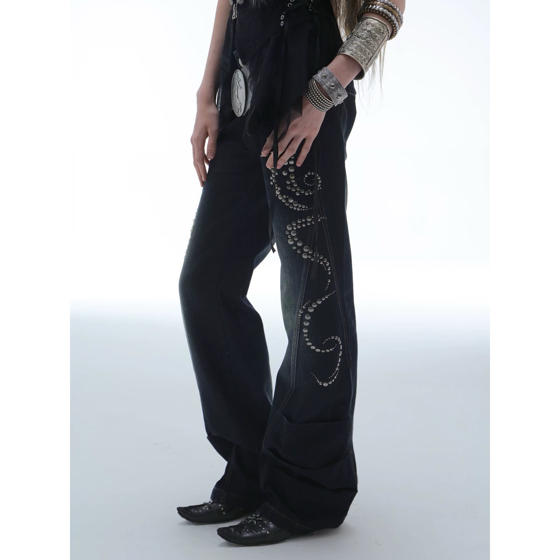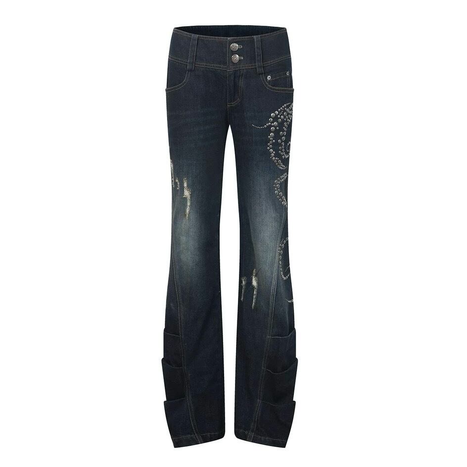 [DoublePunch] Ancient Style Straight Old Embroidered Diamond Jeans