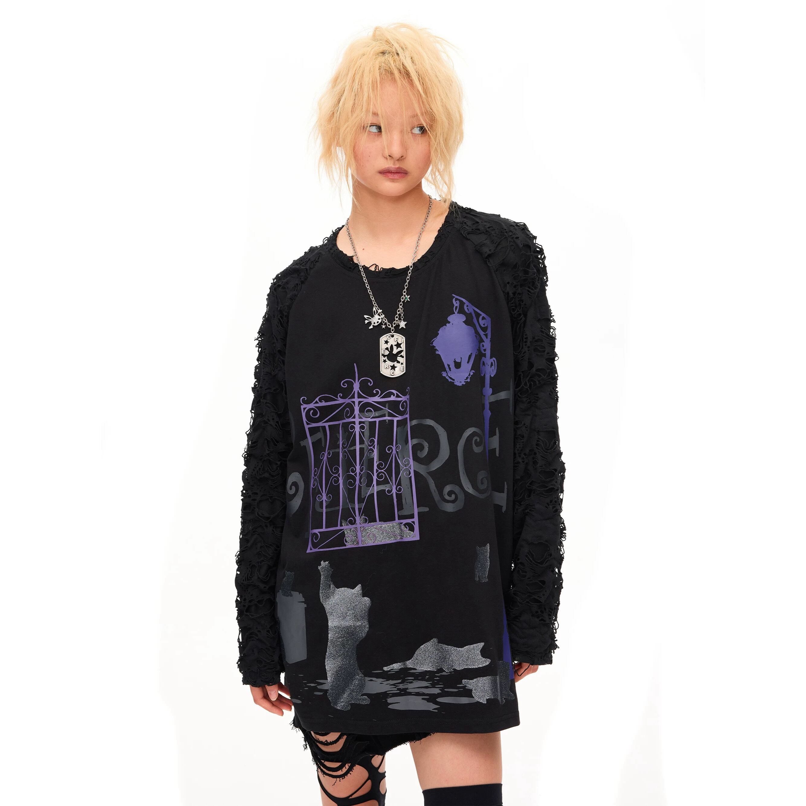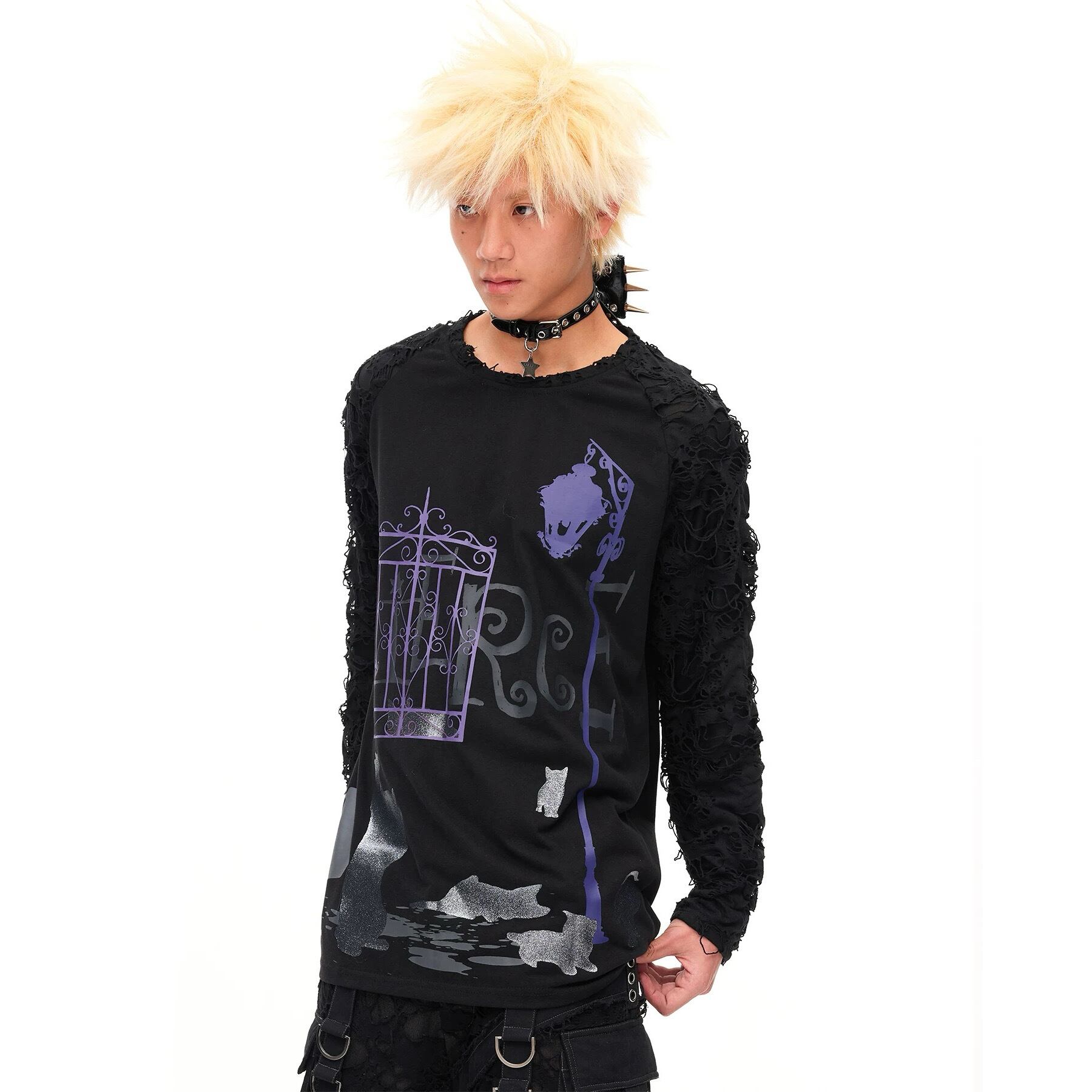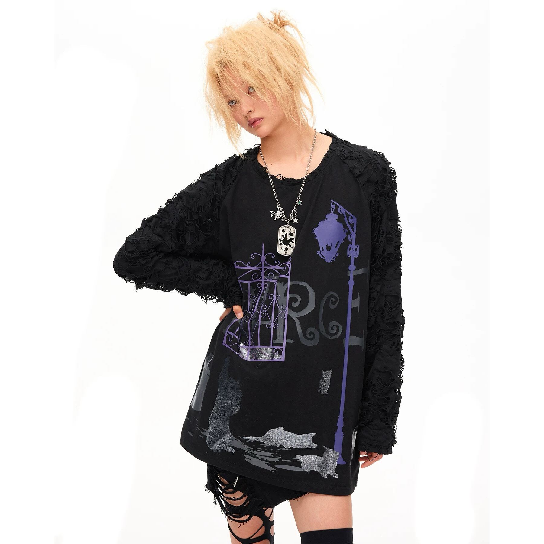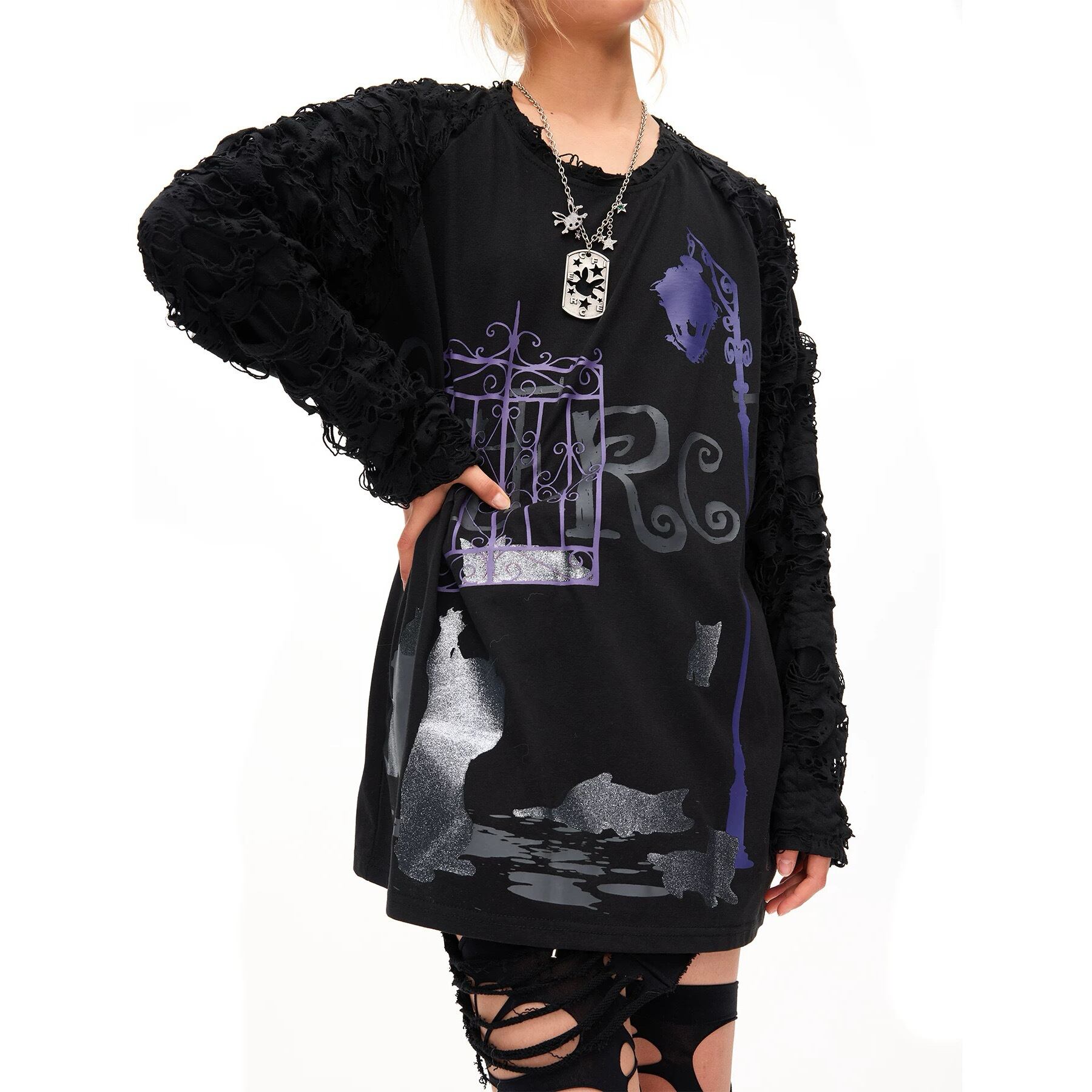 [CFIERCE] Night Sparkling Cat Long-Sleeve Top