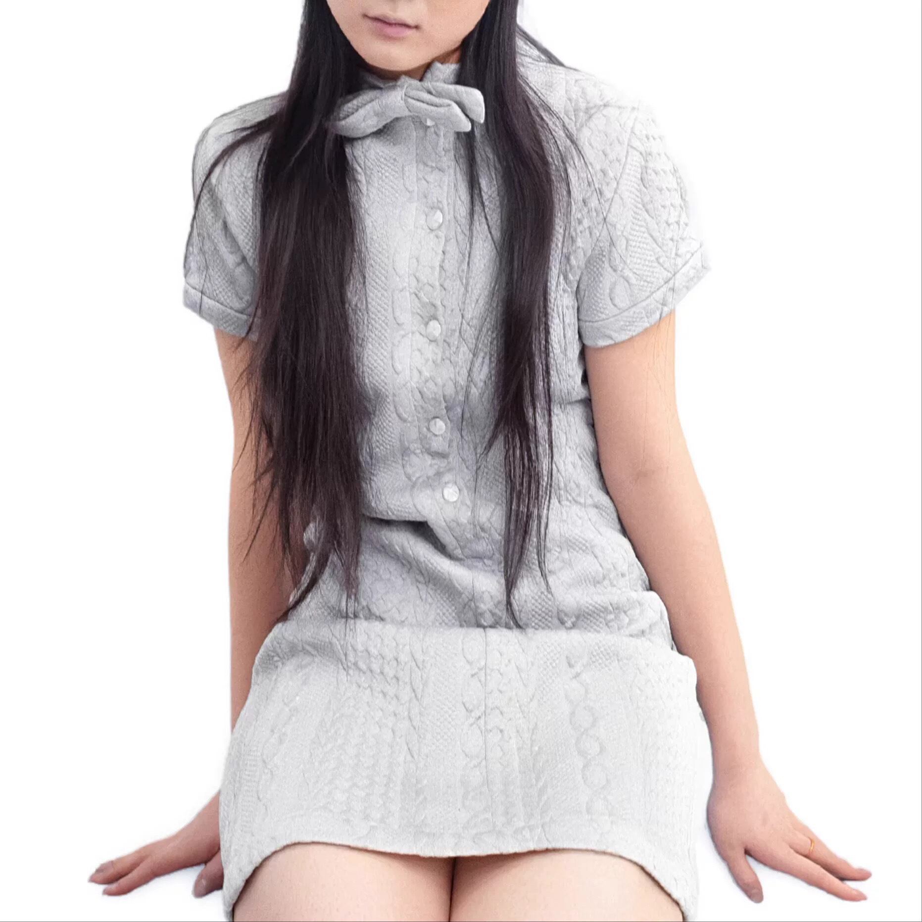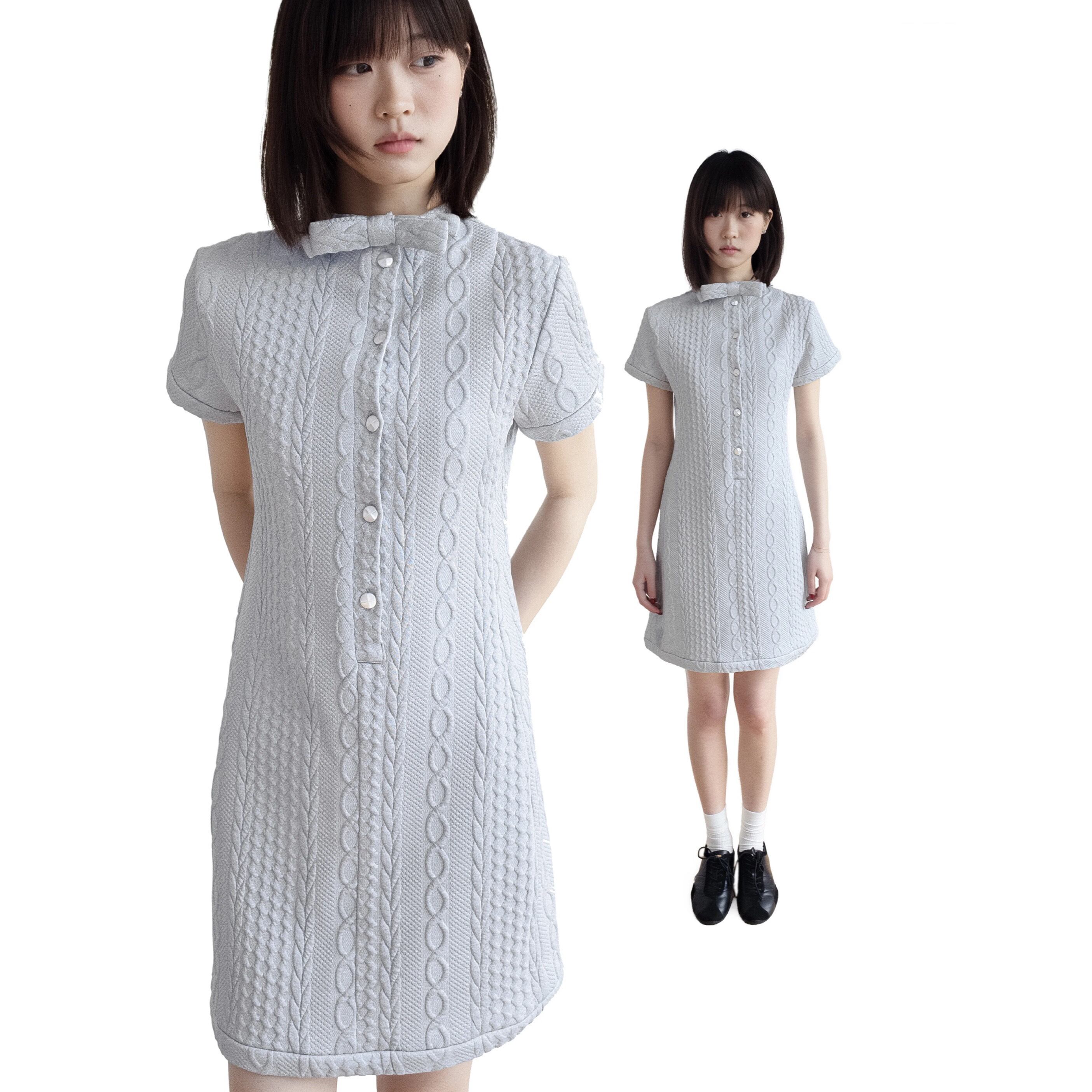 [takeabreak] light gray bow pearl linen dress