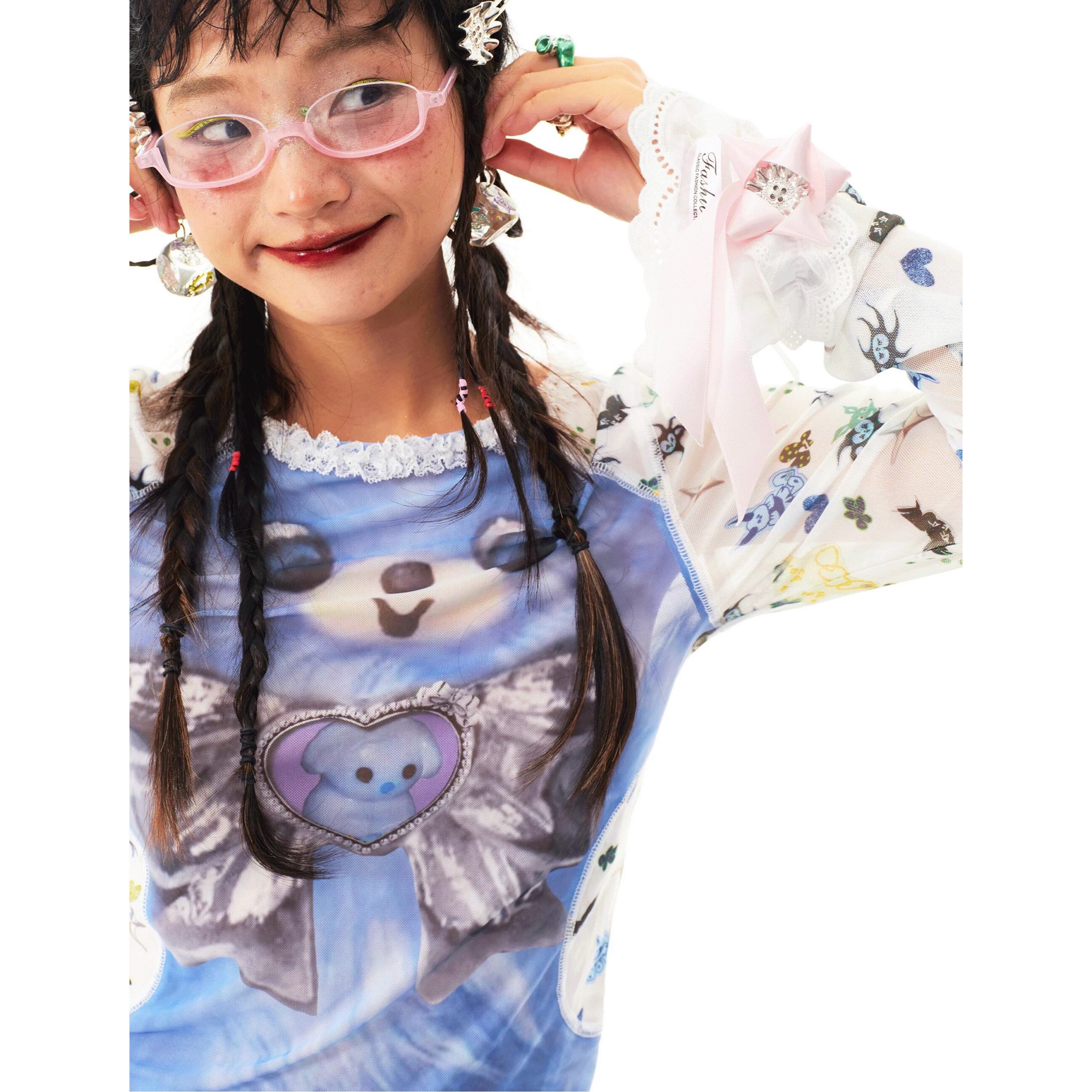[Sillysis] blue puppy loose mesh top