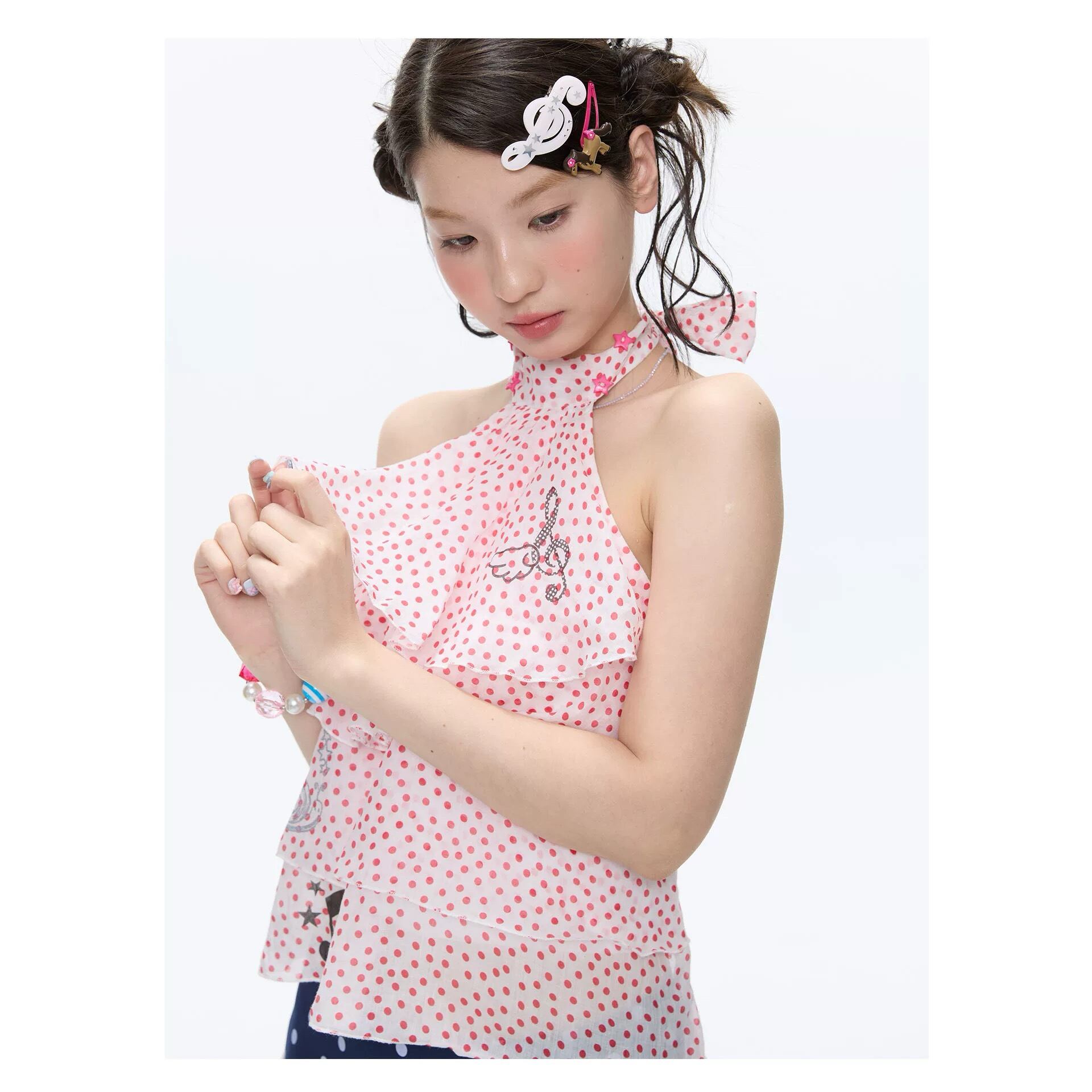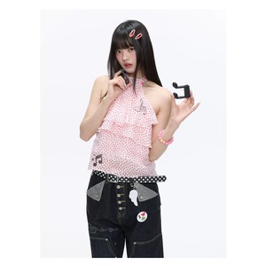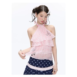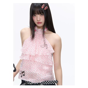 [BETWEENAND] Rose Pink Dot Wings Strap Top
