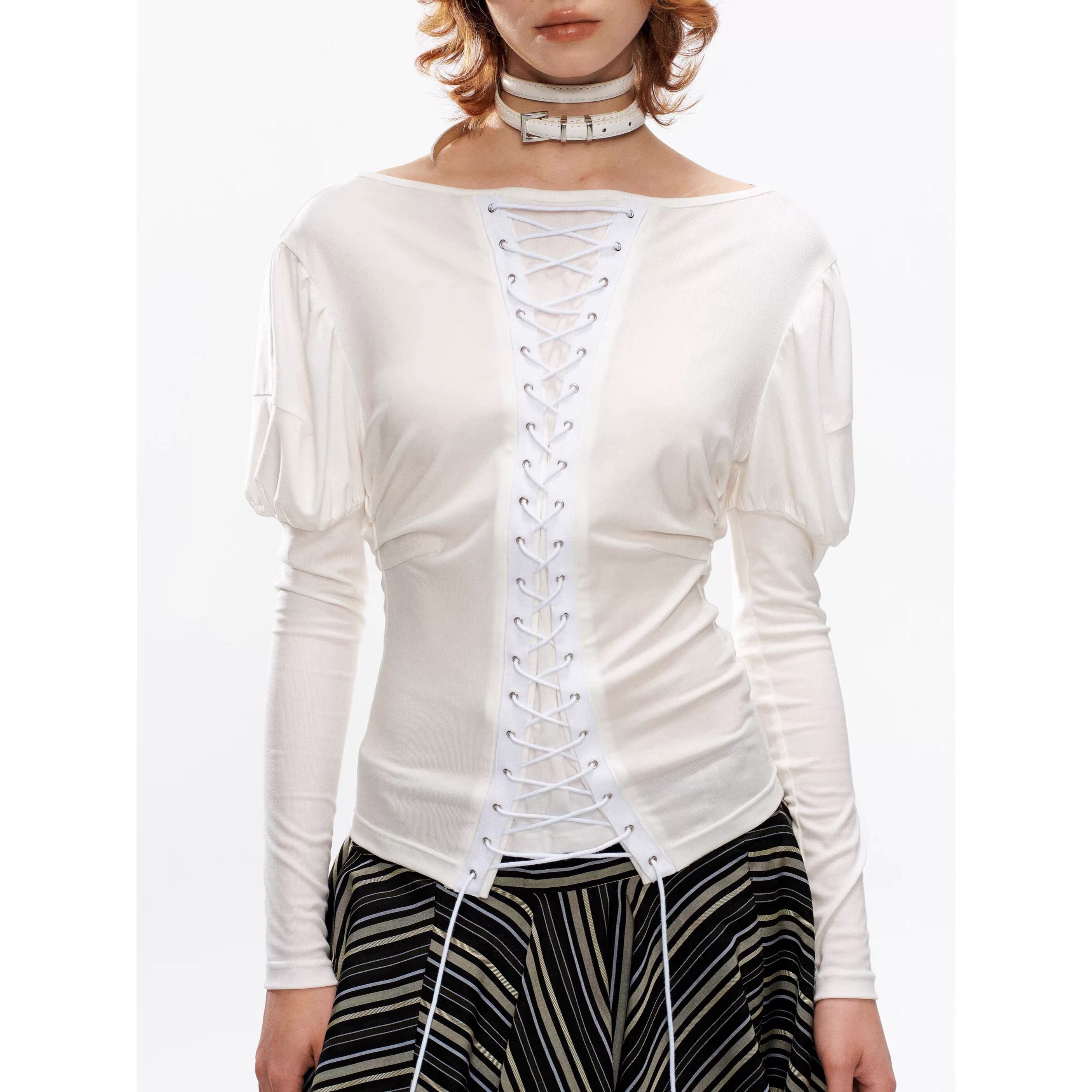 [YOSHUYUKI] vintage court strap white top