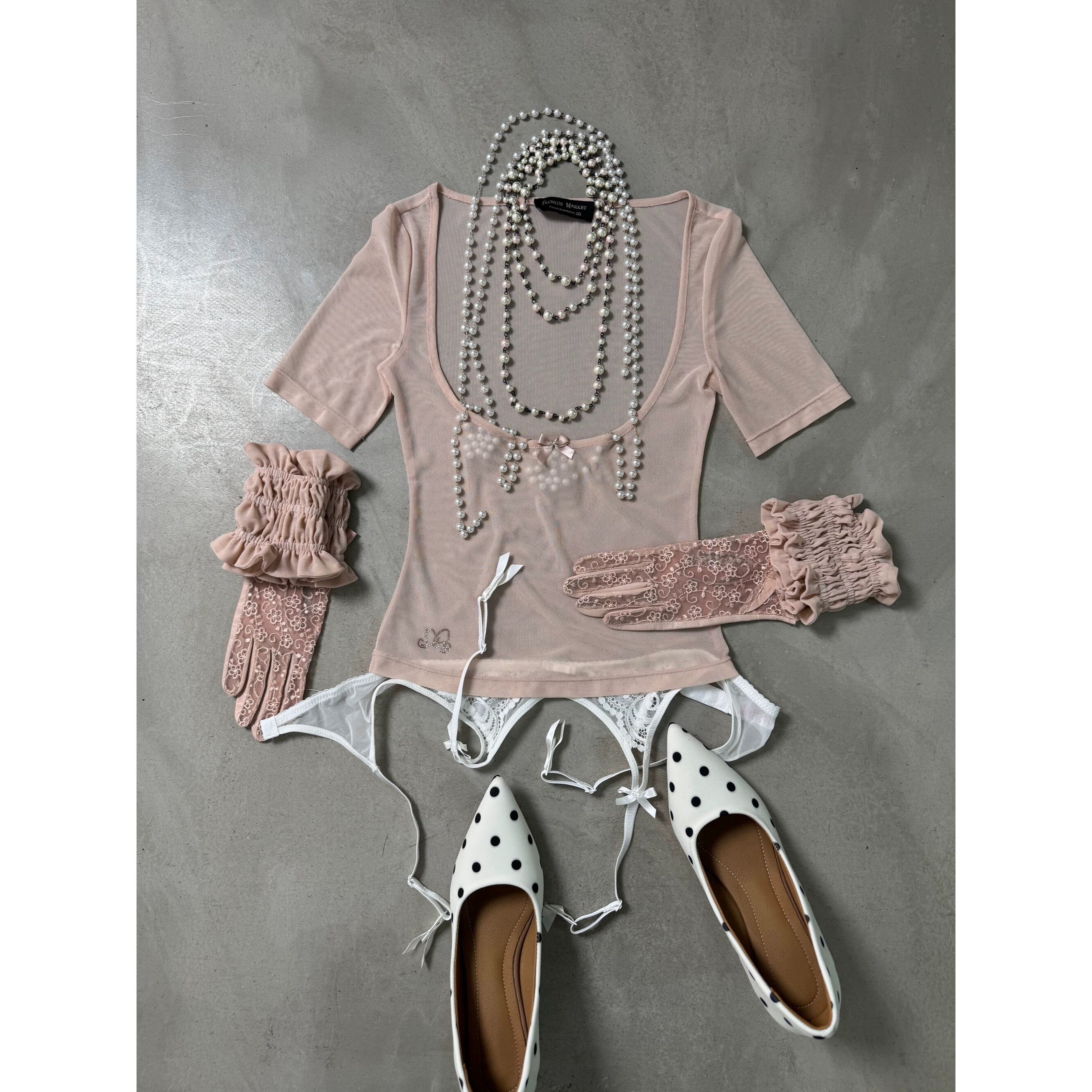 [Flowers birds Market] Light Pink Lace Sweet Bow Long-Sleeve Top