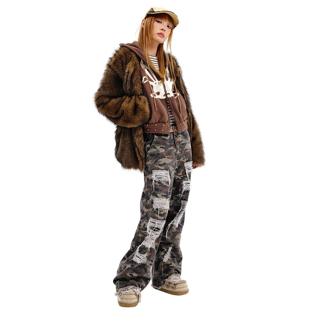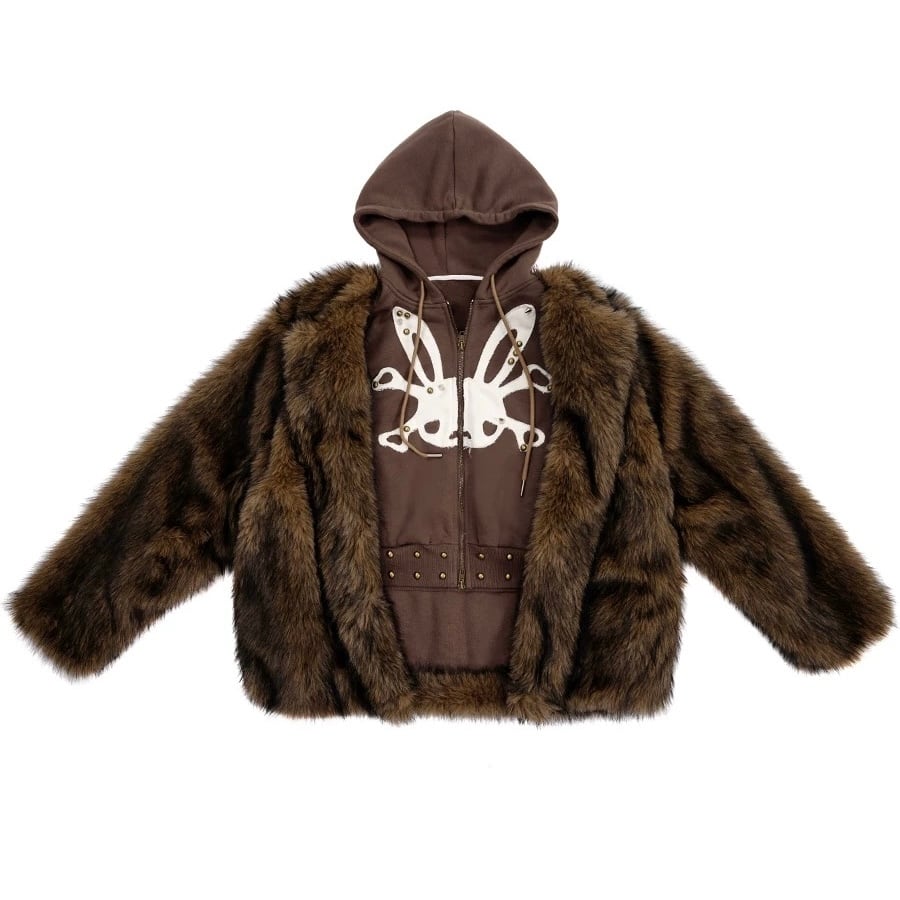 [CFIERCE] 24AW Rabbit Skull Fake Two-piece Fur Coat