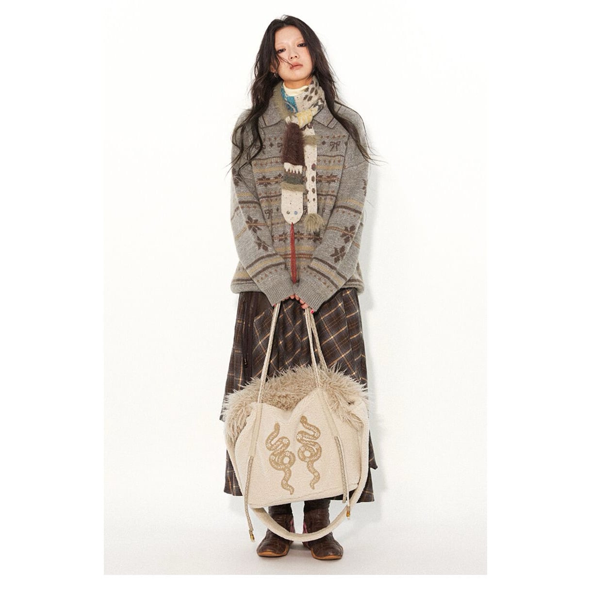 [PHYS] Snake Shadow lamb hair embroidery bag