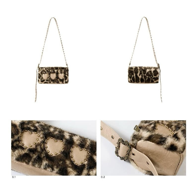 [CONP] Leopard Pattern Vintage Rivet Crossbody Bag